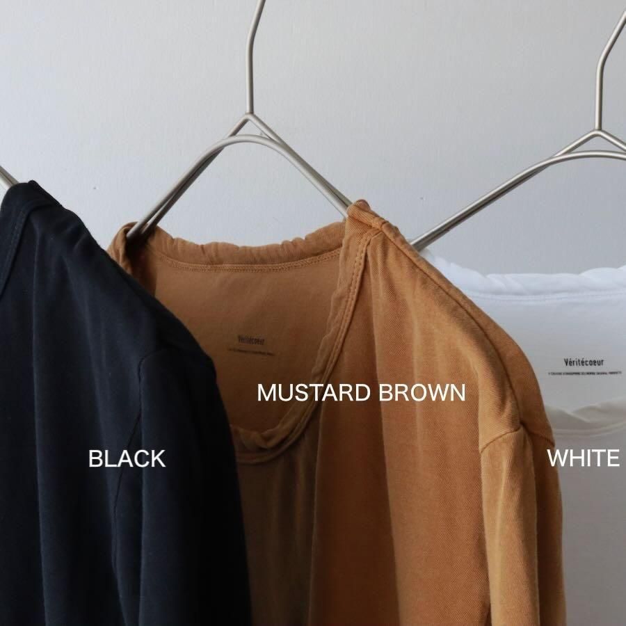 現在の在庫はWHITEをベースとし(サイズ表記参照)、BLACKは若干小さめ、MUSTARD BROWNは大きめな仕上がりです。