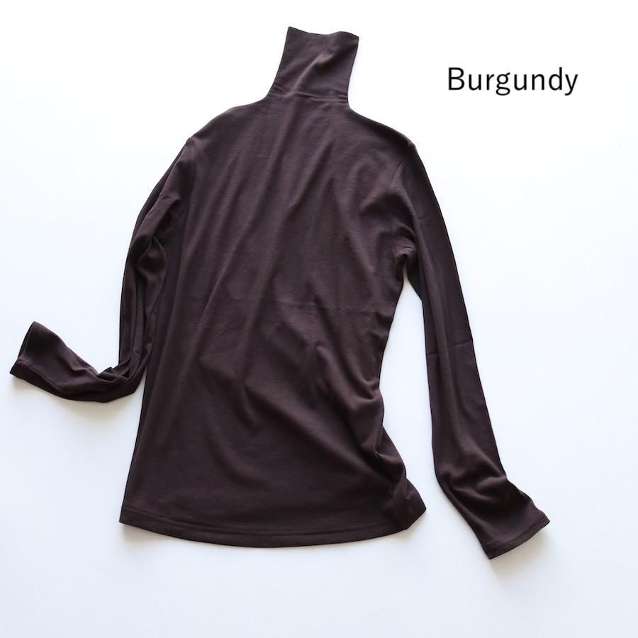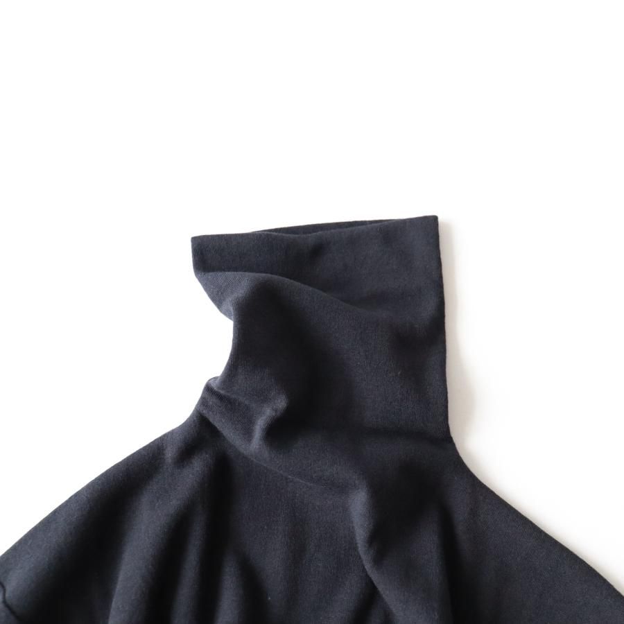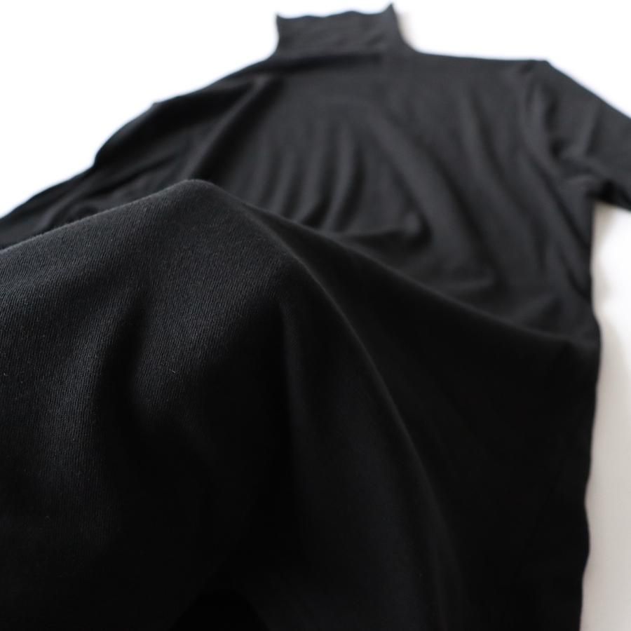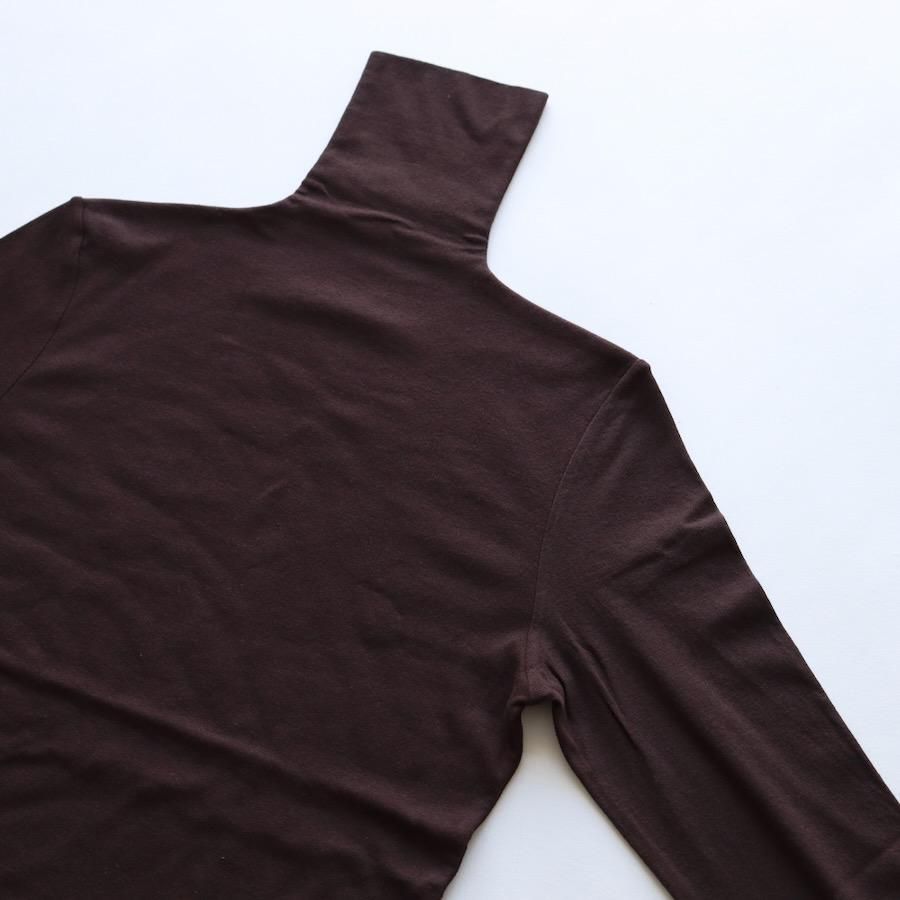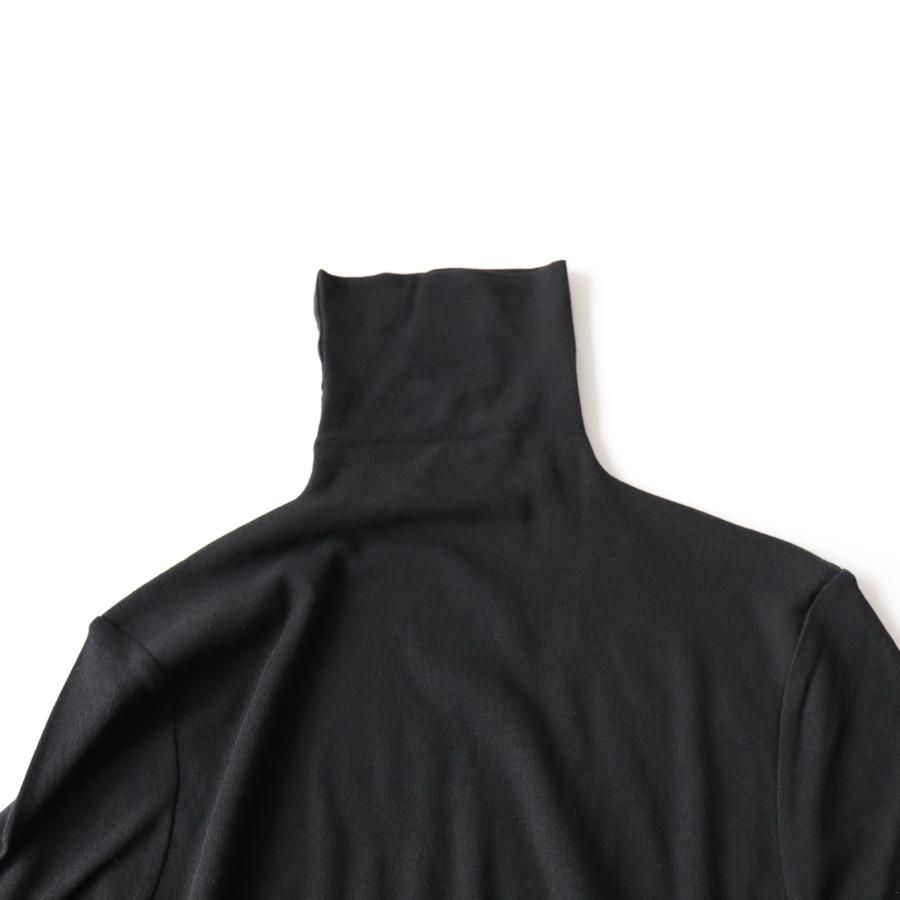 柔らかなフィット感で首元がすっときれいに立ち上がるタートルネック。