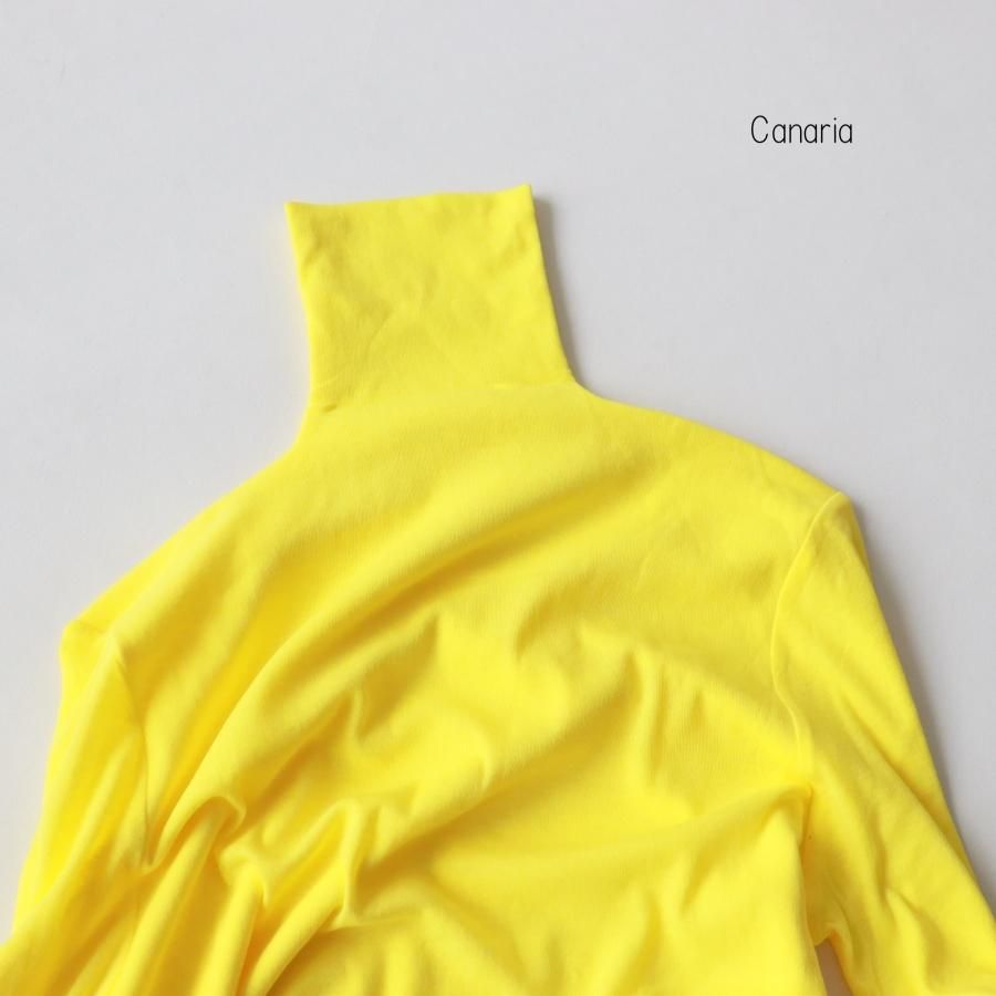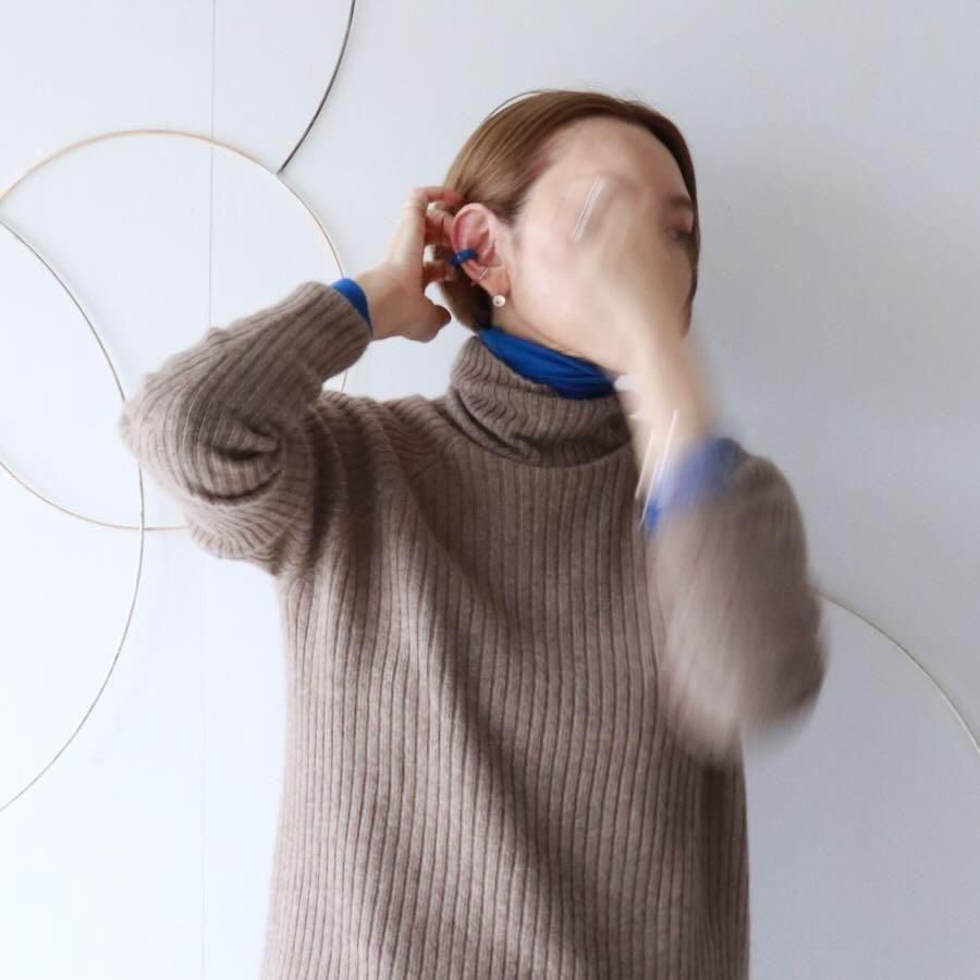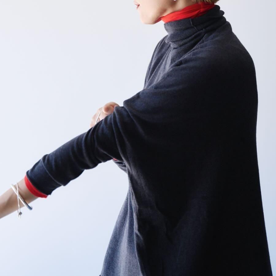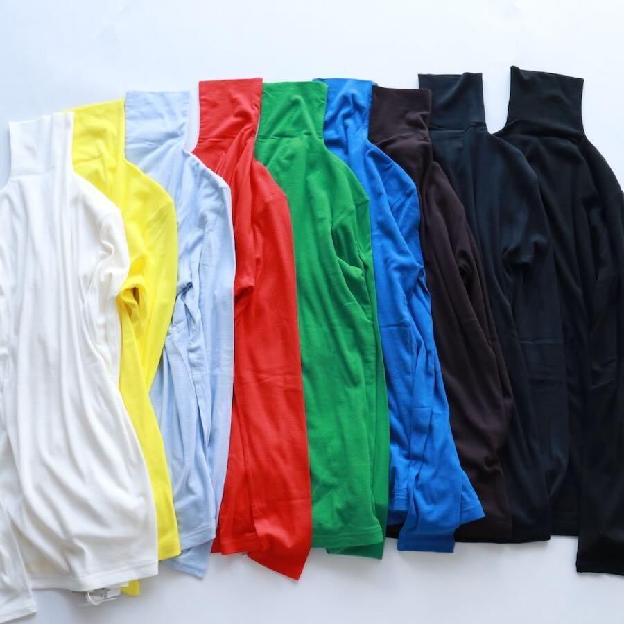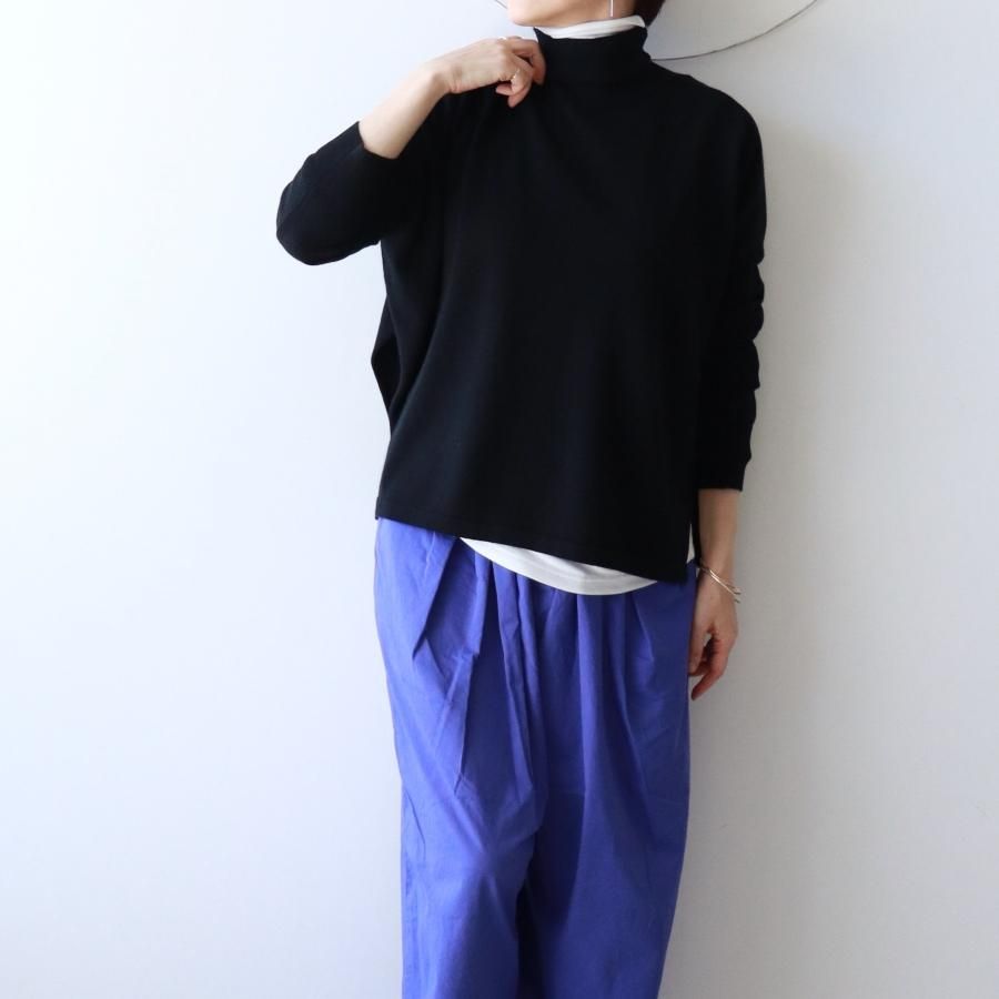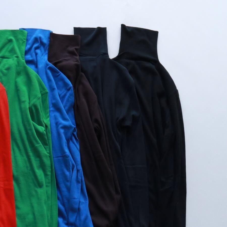 柔らかなフィット感で首元がすっときれいに立ち上がるタートルネック。