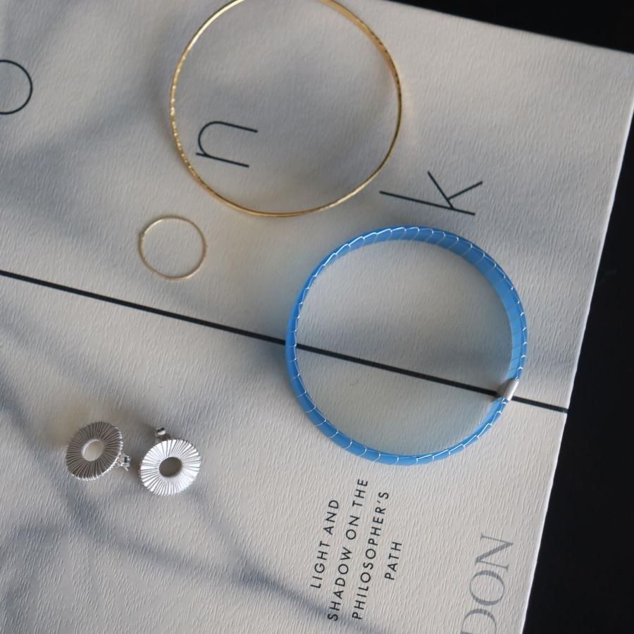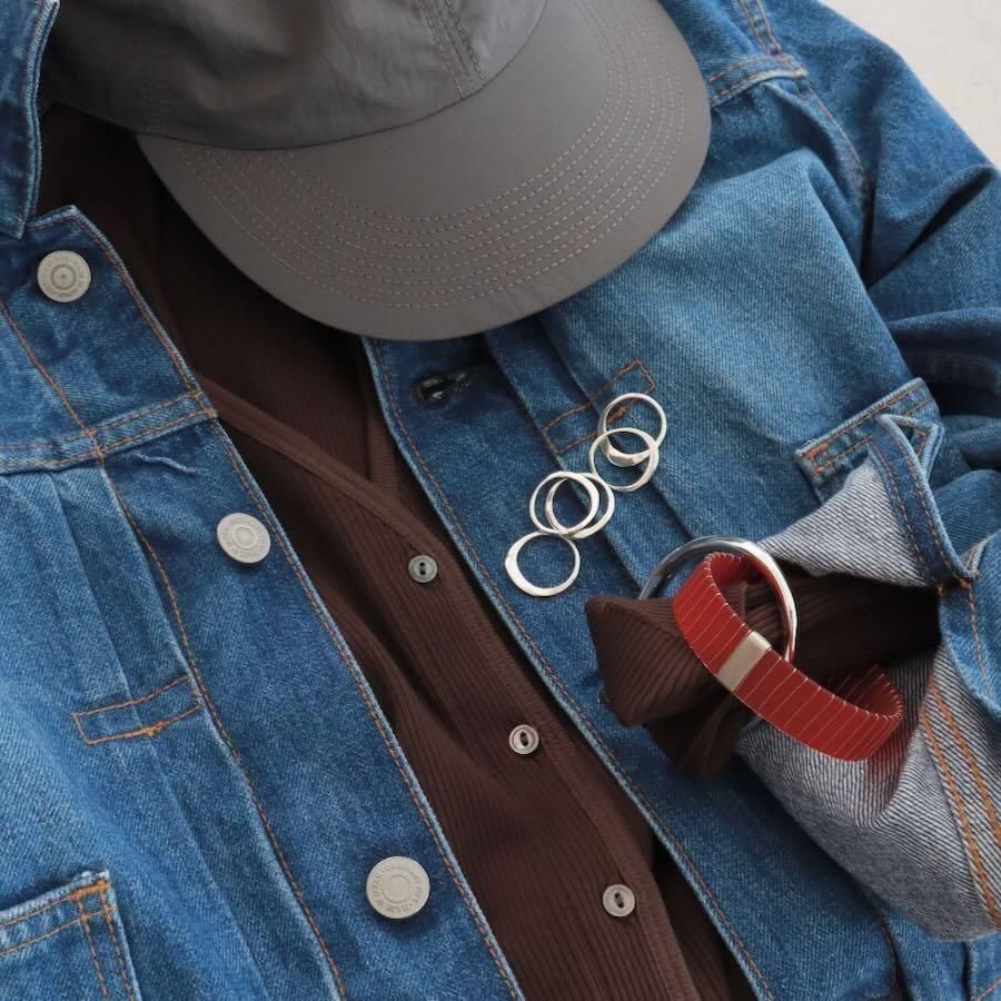 普段カラー物を着ないという方も、小さなブレスレットで少し着こなしに変化をつけるというのはいかがでしょうか?