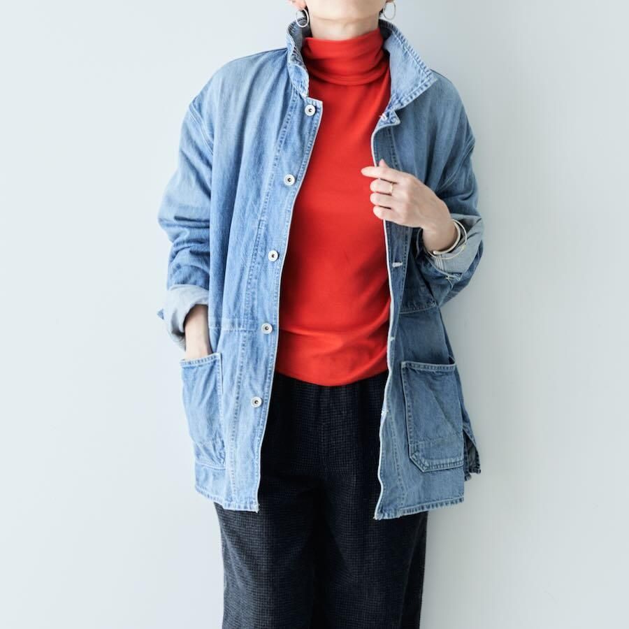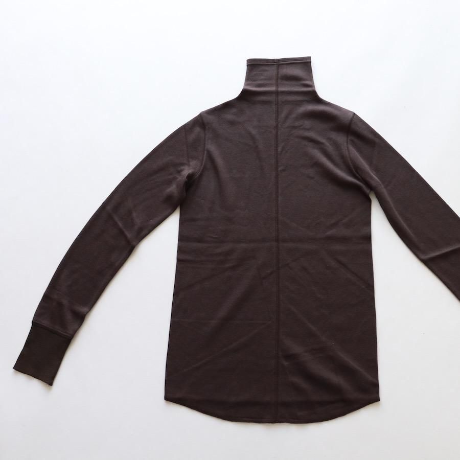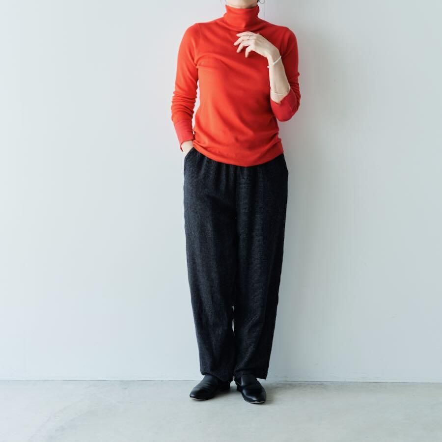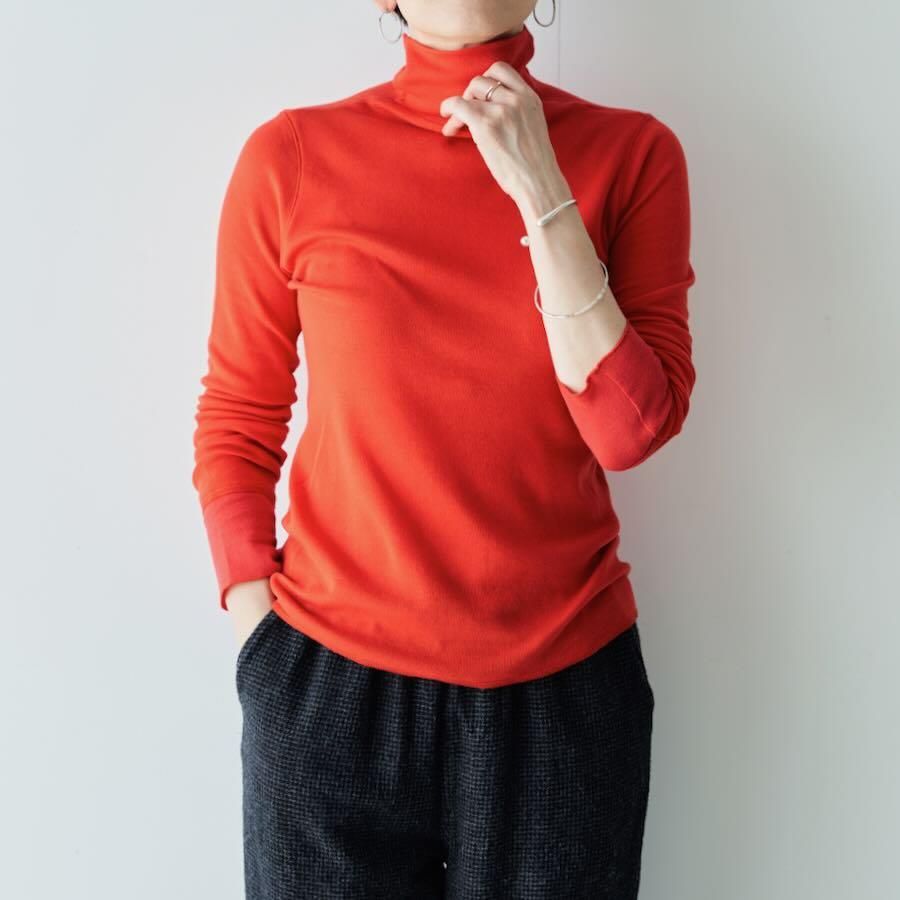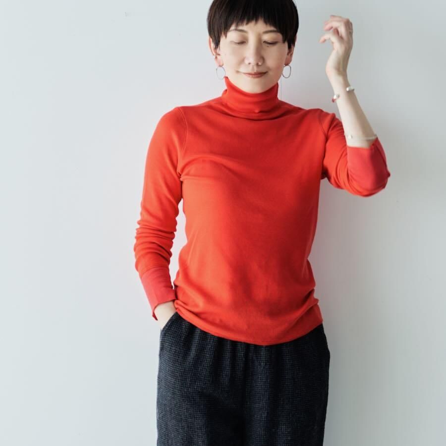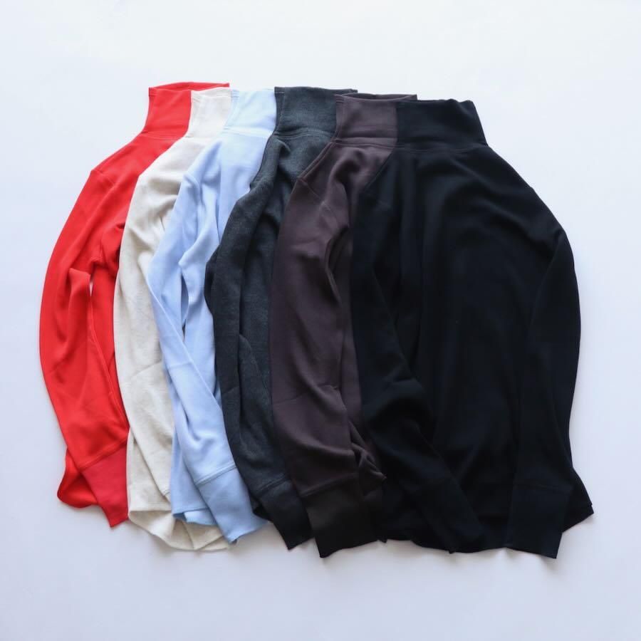 こちらは1枚でも着やすい少しゆったりとしたサイズ感のハイネックプルーバーです。