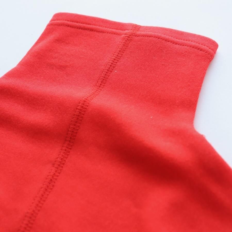 テンションのかかる裾や袖⼝、襟ぐりに付属として使⽤しました。