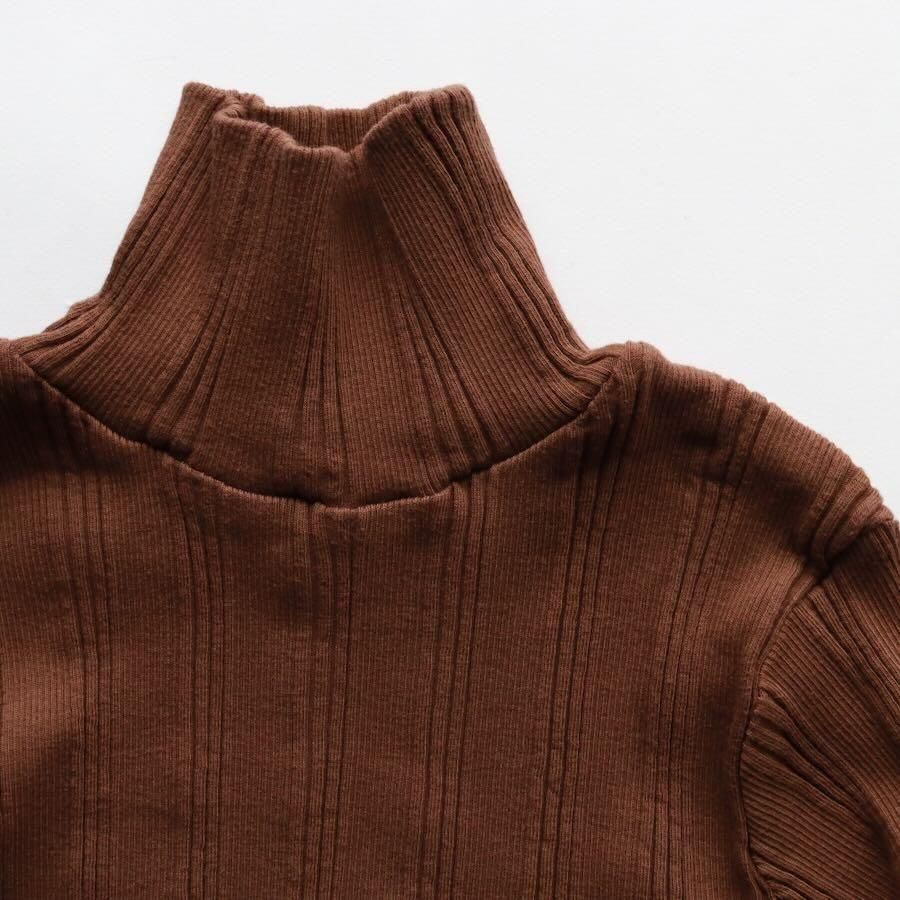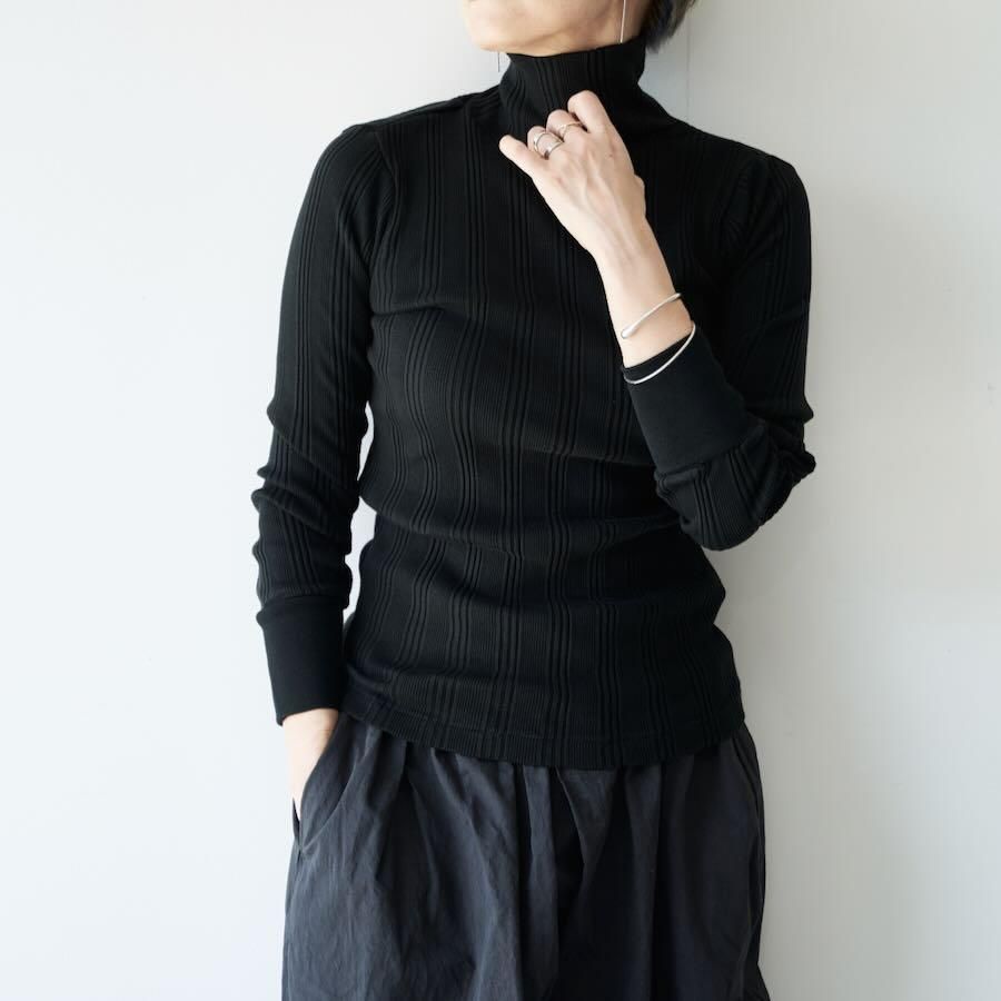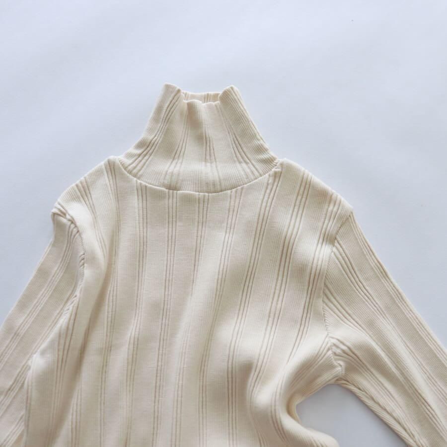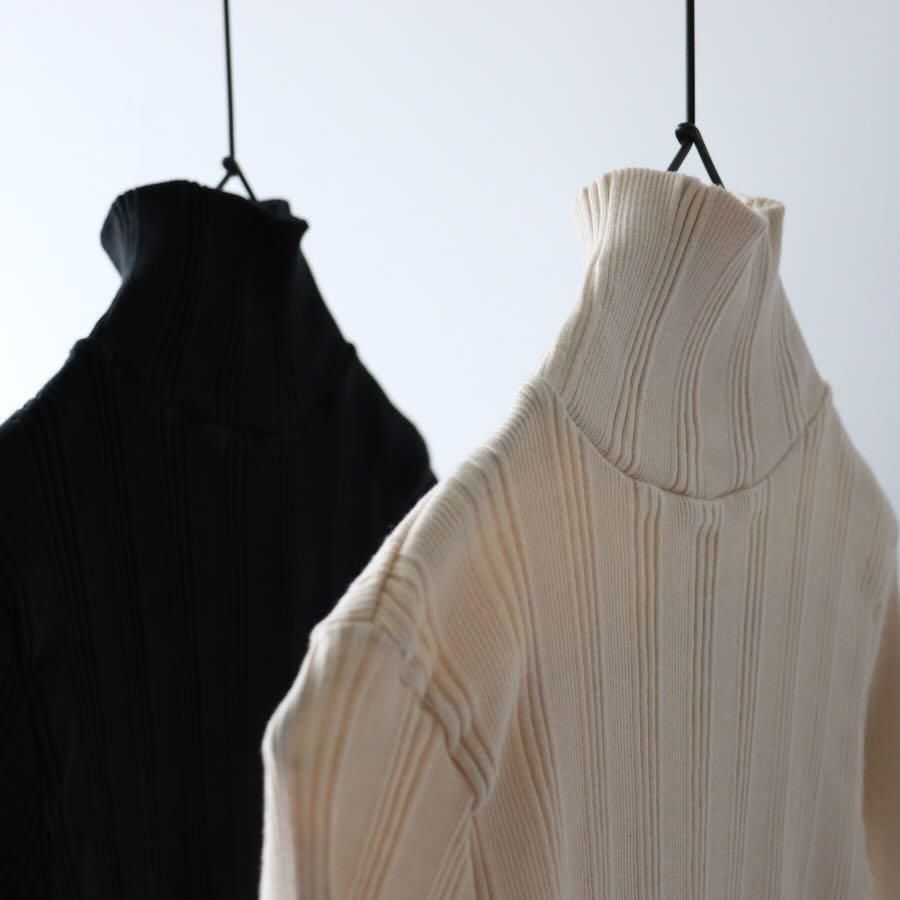 ぴったりと首元に自然にそうシルエットがきれいなタートルネック。