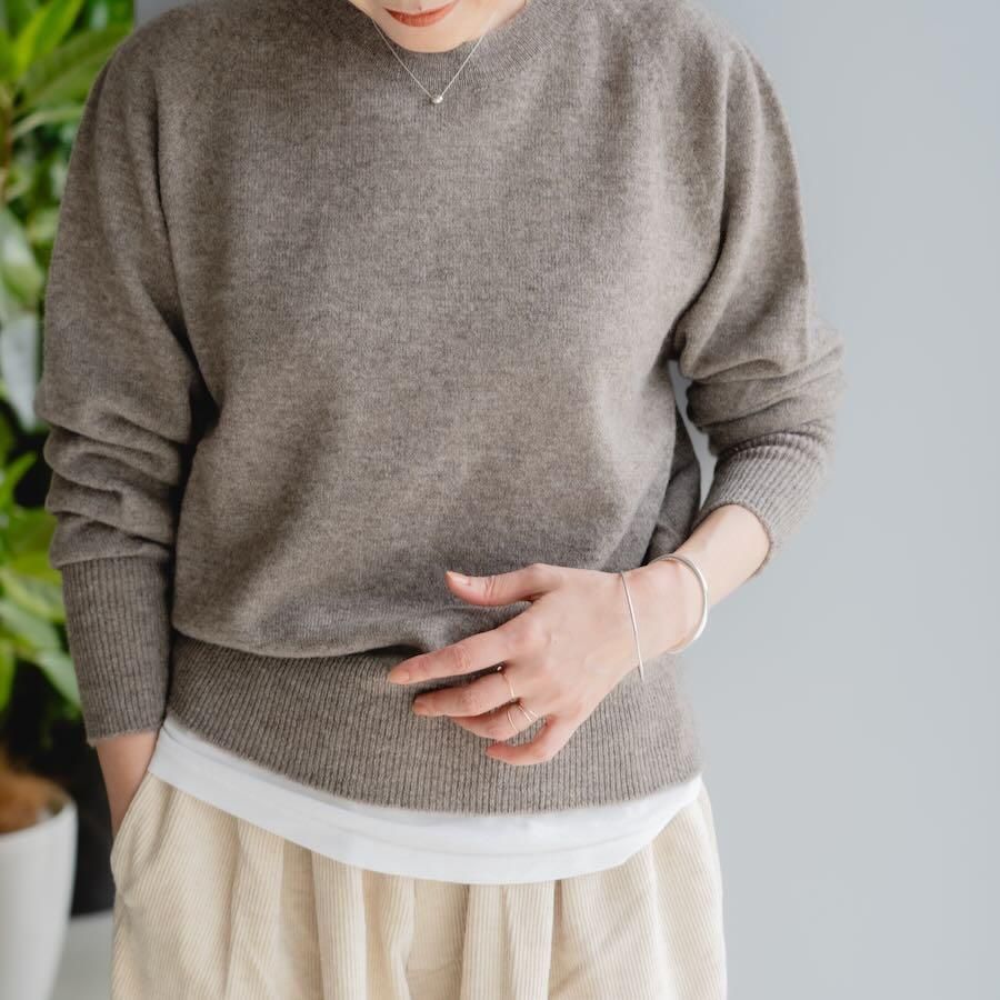 こちらはスタンダードで使いやすいクルーネックラグランセーターです。