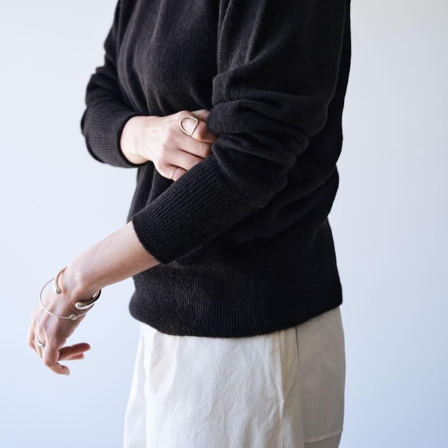 袖口の長めのリブがいいアクセント。しっかり目のリブで止まりも◎
