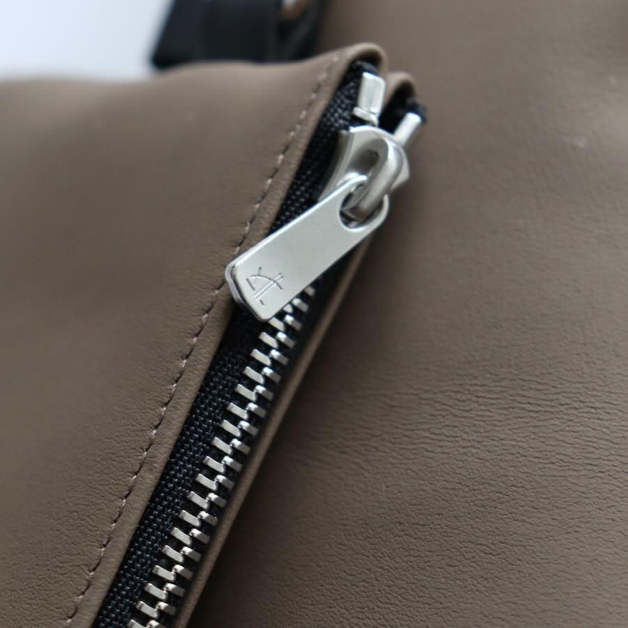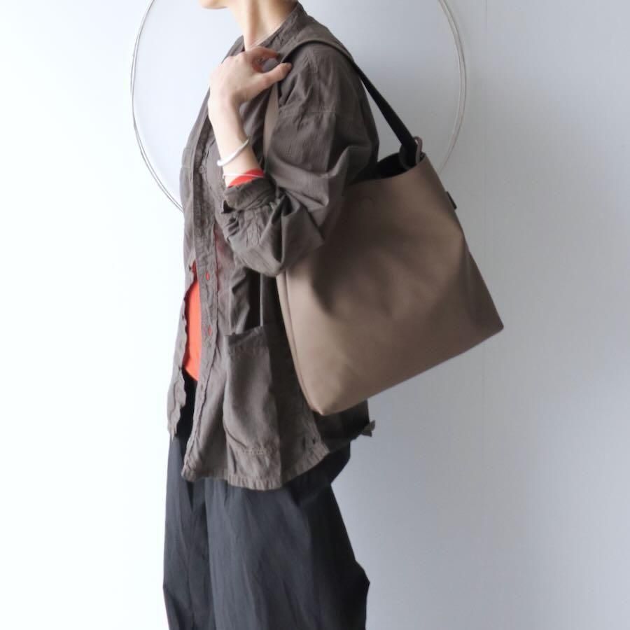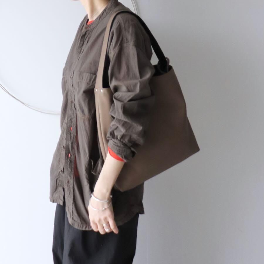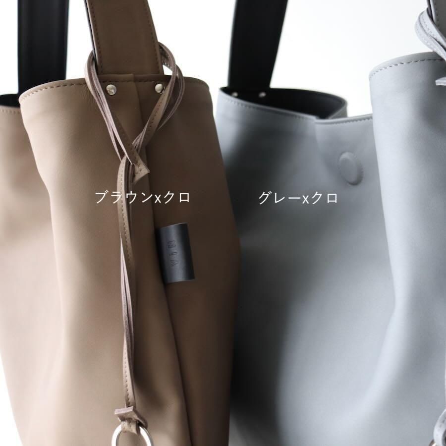 厚さ約1mmの革でバッグを2つ作り閉じ合わせリバーシブルバッグにしています。