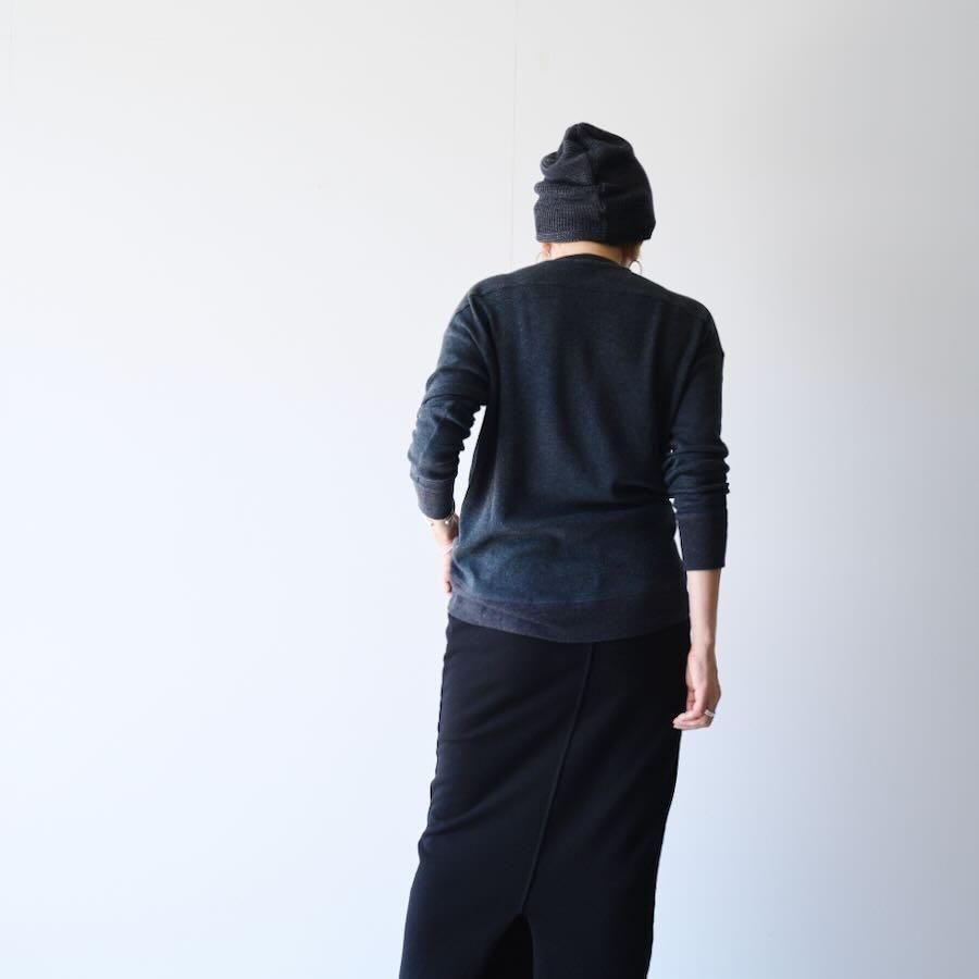 リブのテンションやサイズ感の微調整を繰り返し、肩には敢えて縫製線を入れず