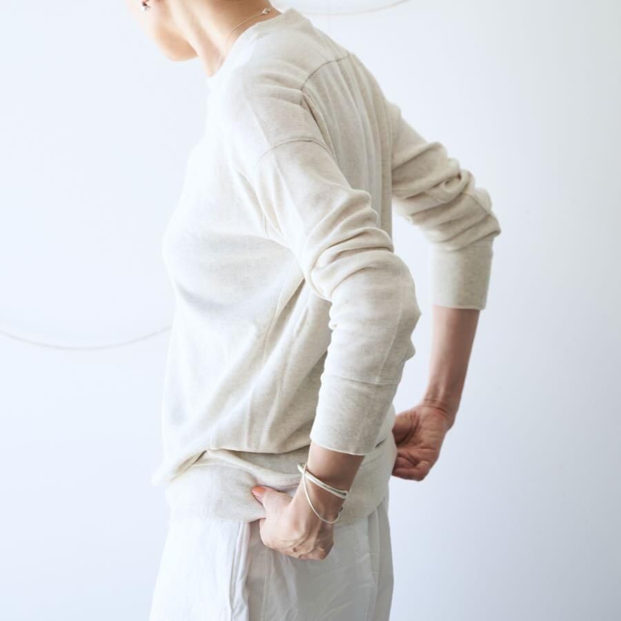 同素材のレギンスやジョガーパンツと上下でインナーに着るのも極上です。