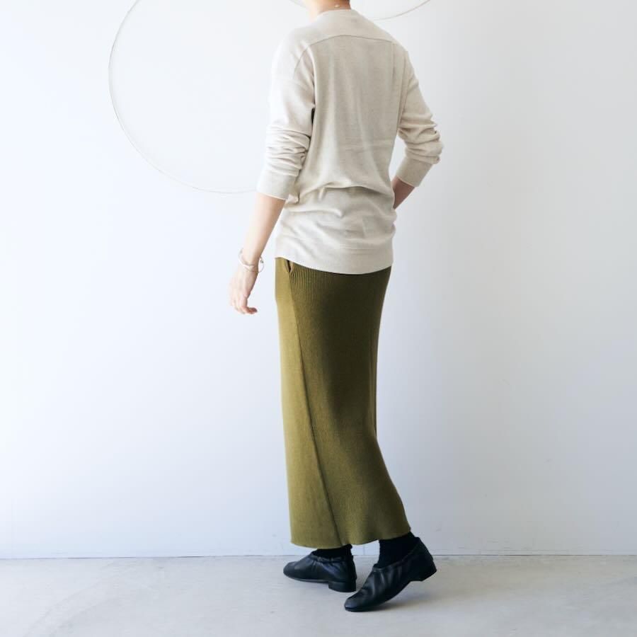 弊社のロングセラーであるこの素材に同素材異ゲージのリブをイチから編み⽴て