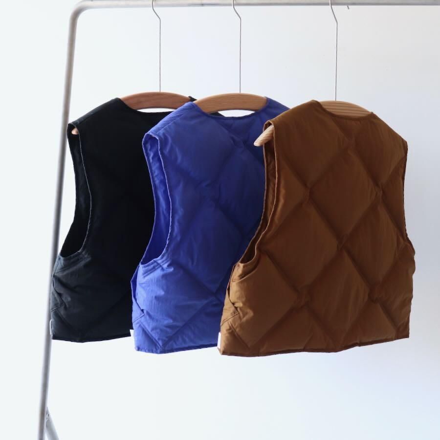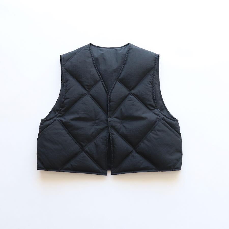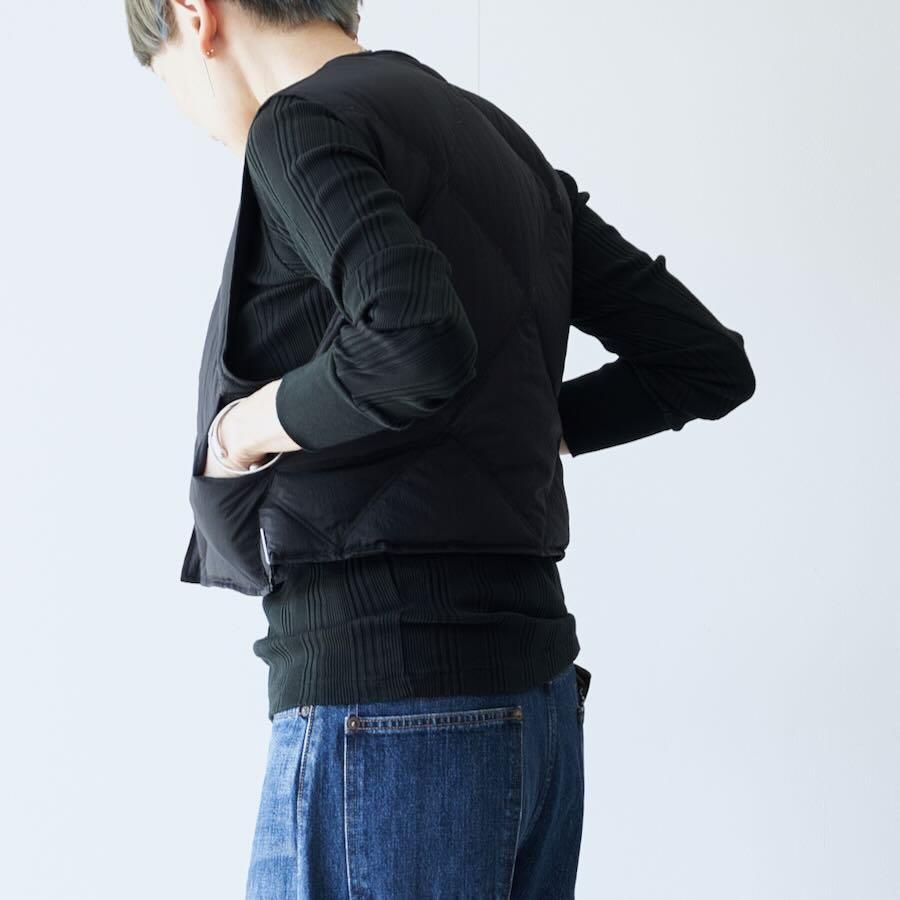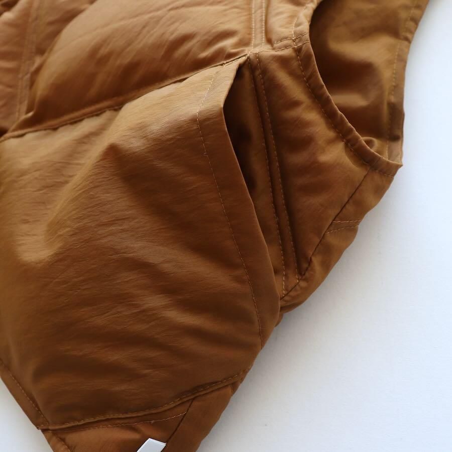 表面にナチュラルなシワ加工を施したナイロン素材のダウンベストです。