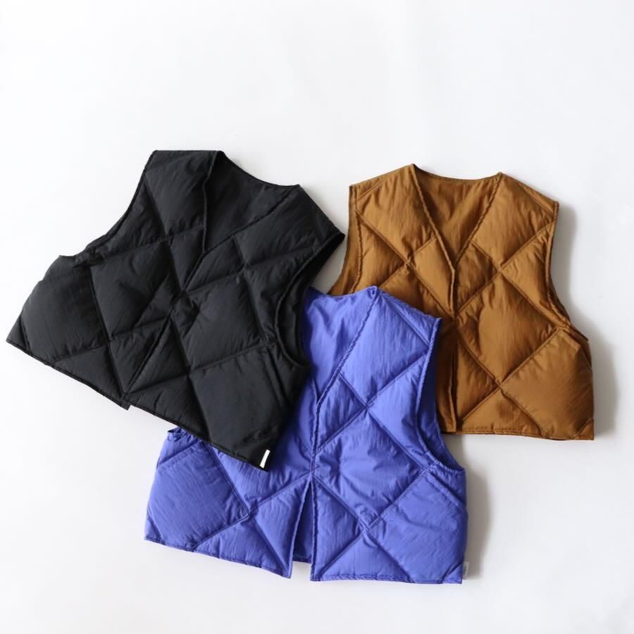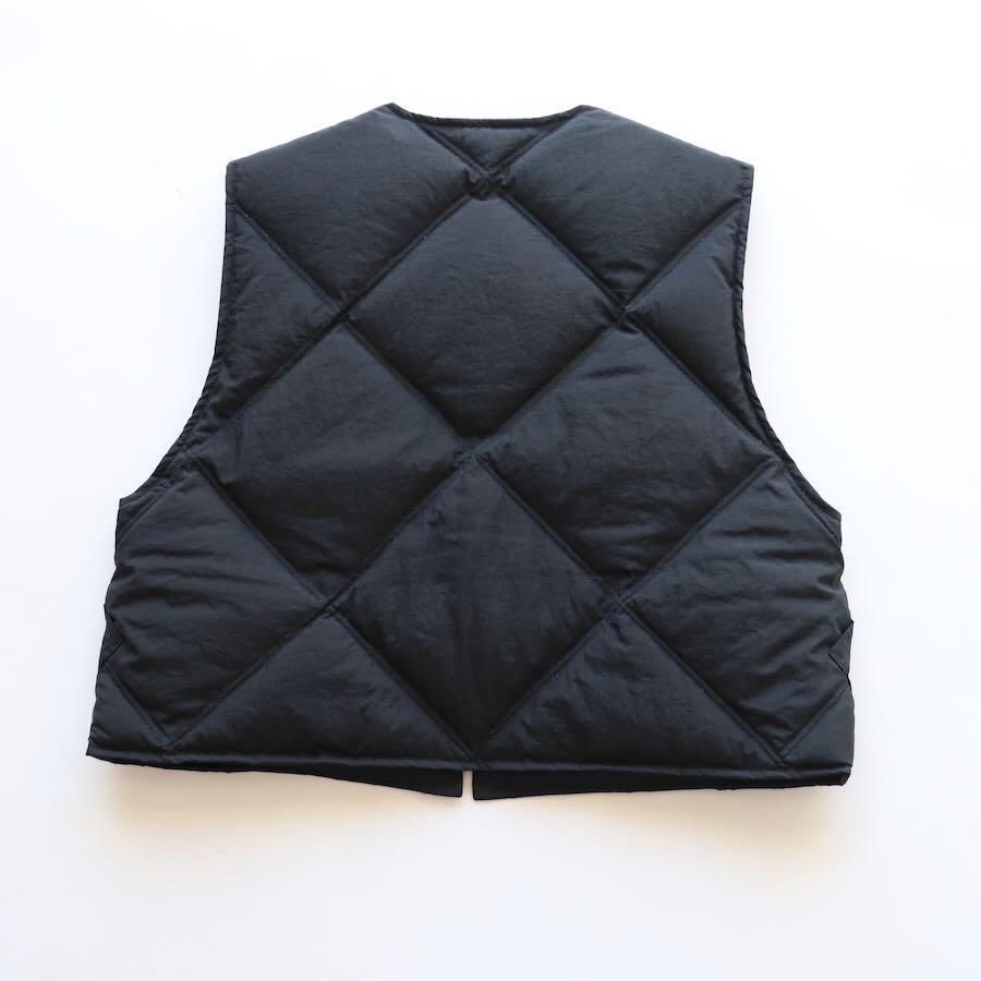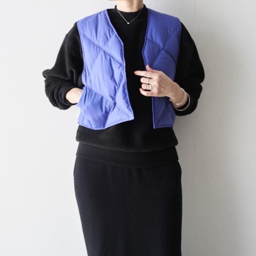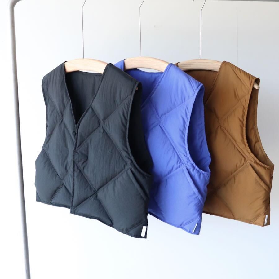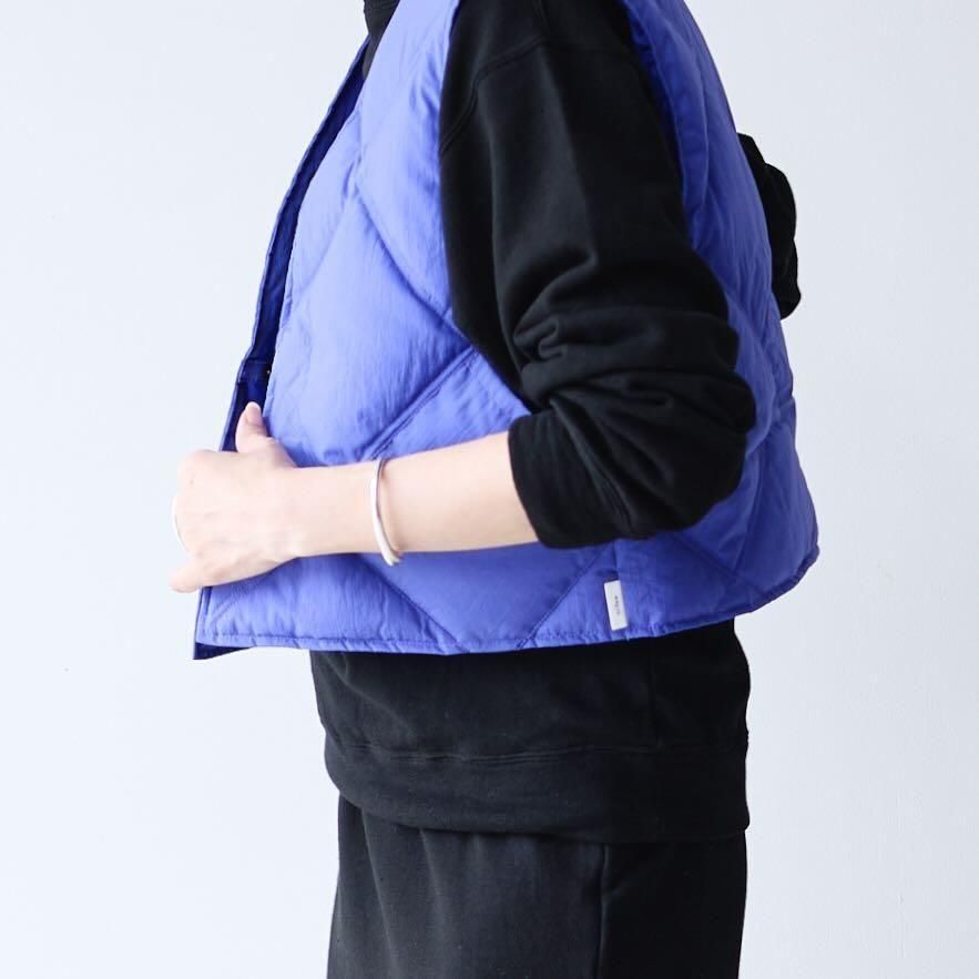 表面にナチュラルなシワ加工を施したナイロン素材のダウンベストです。