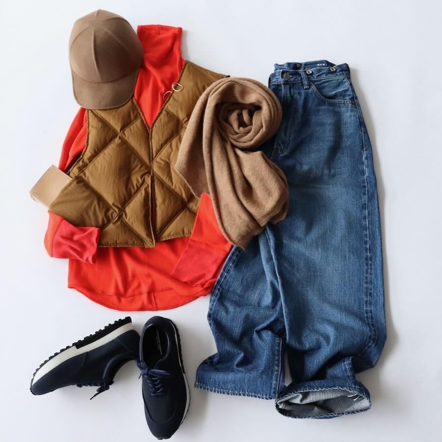 コンパクトなベストはいつものスタイリングに取り入れると