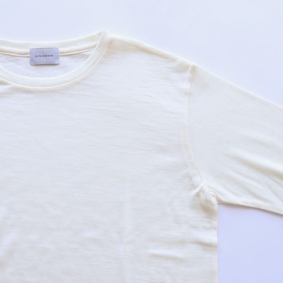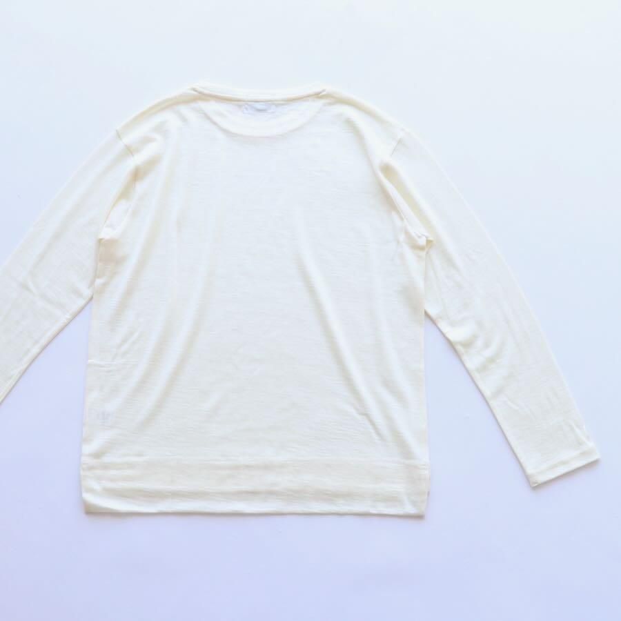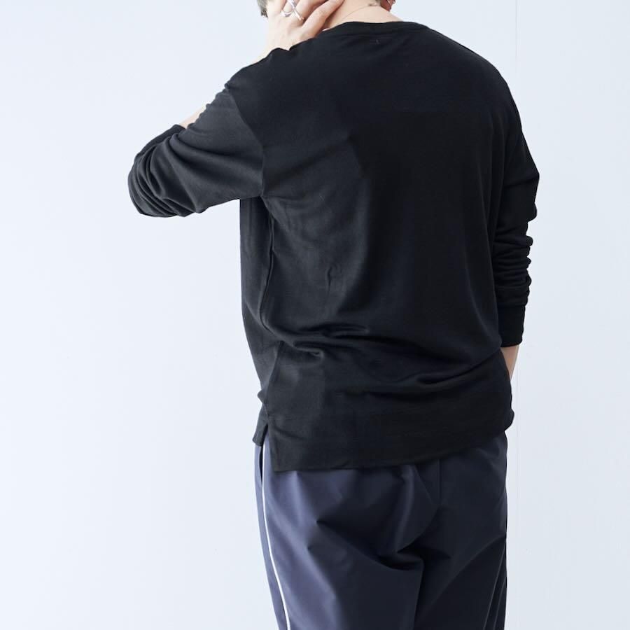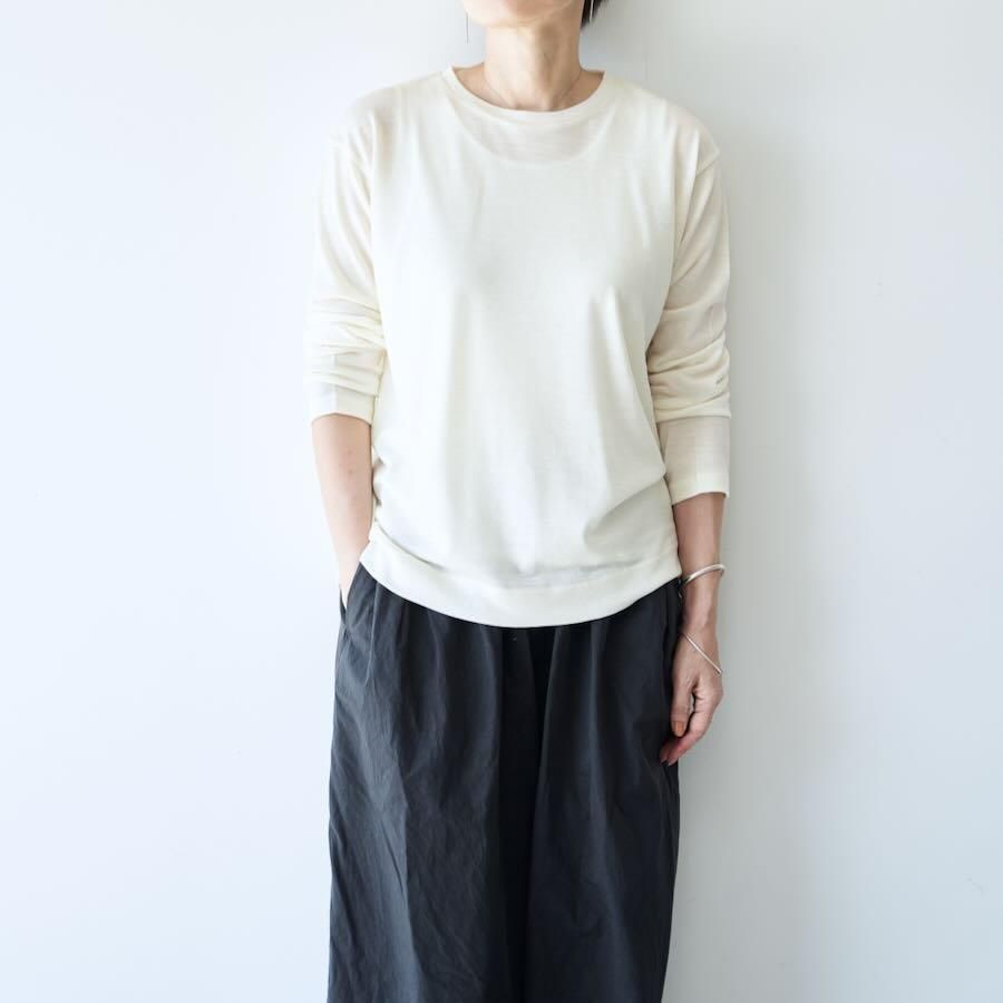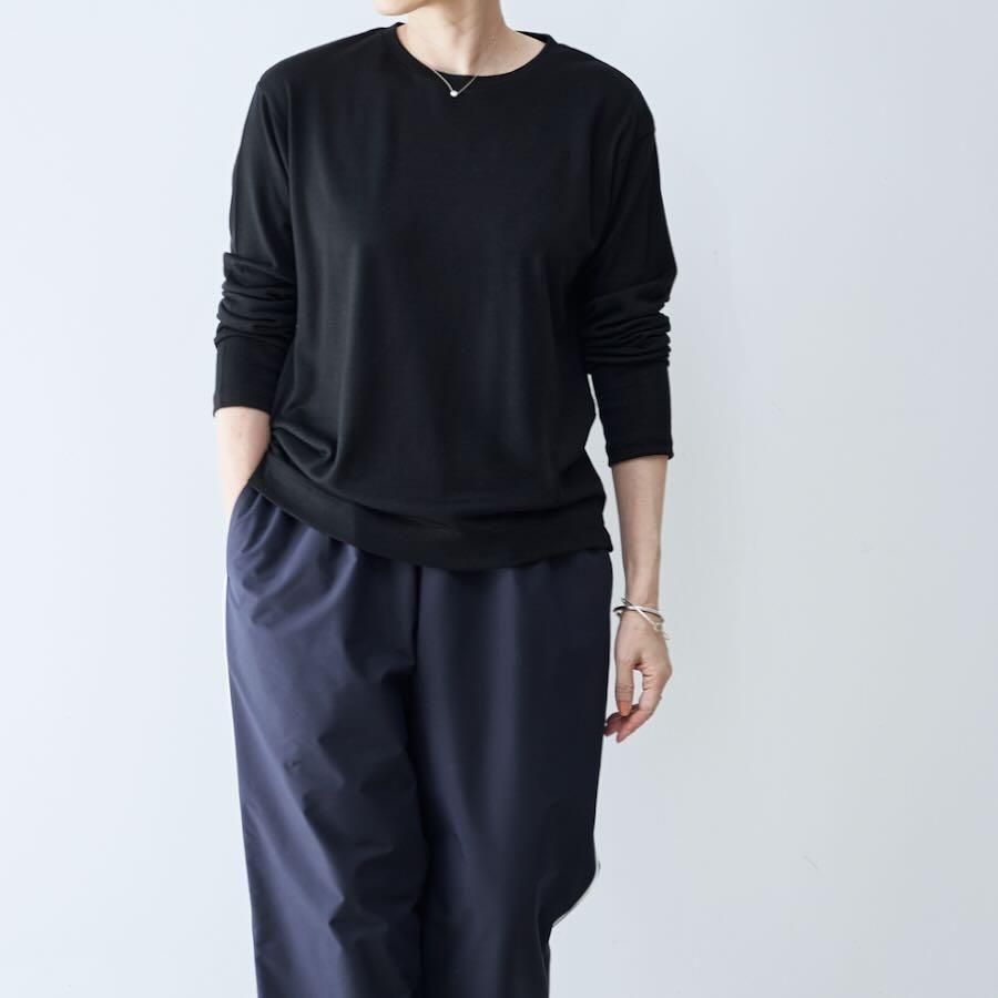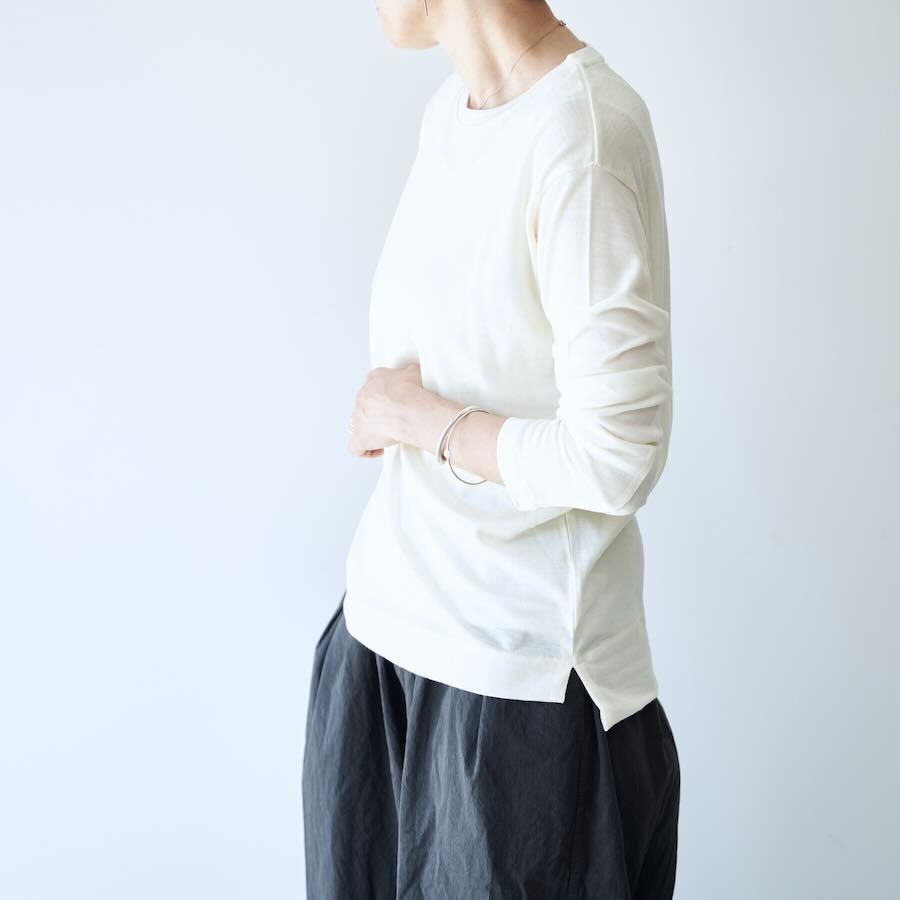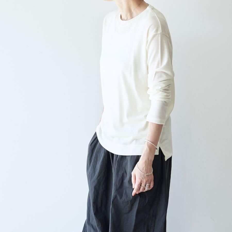 1枚でもいい存在感を放つ薄手のクルーネックロングスリーブteeです。