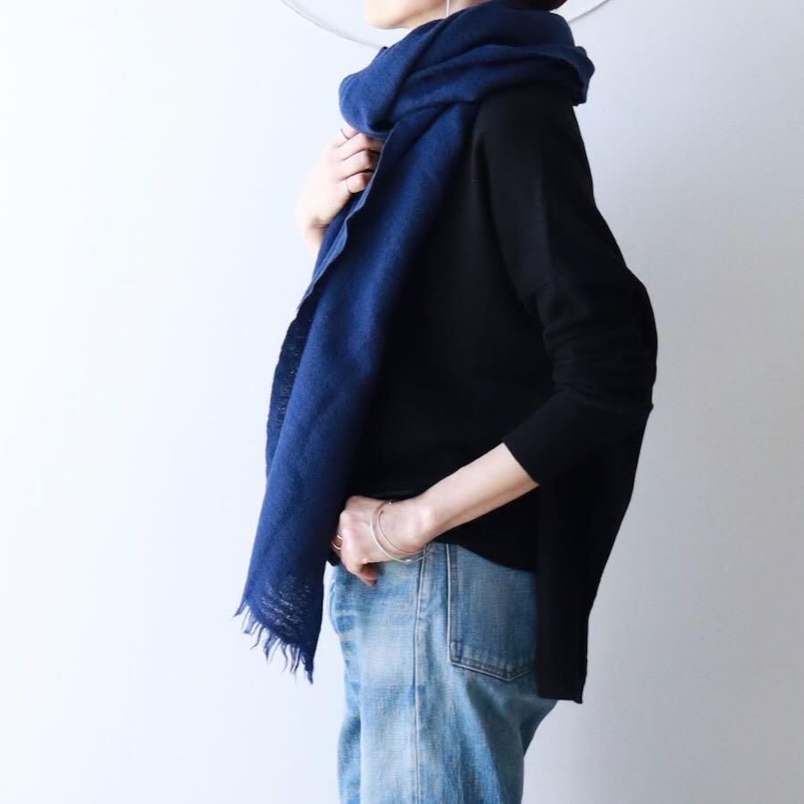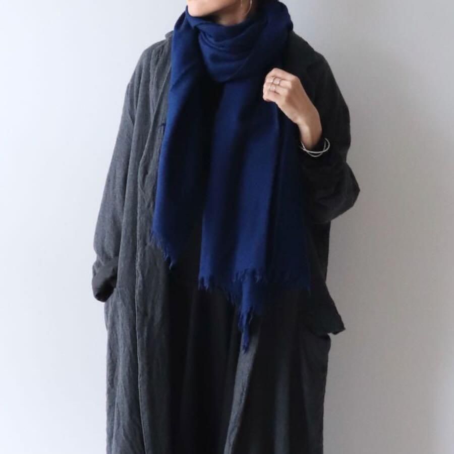 シンプルな無地のストールは、スタイリングを選ばず幅広くお使いいただけます。