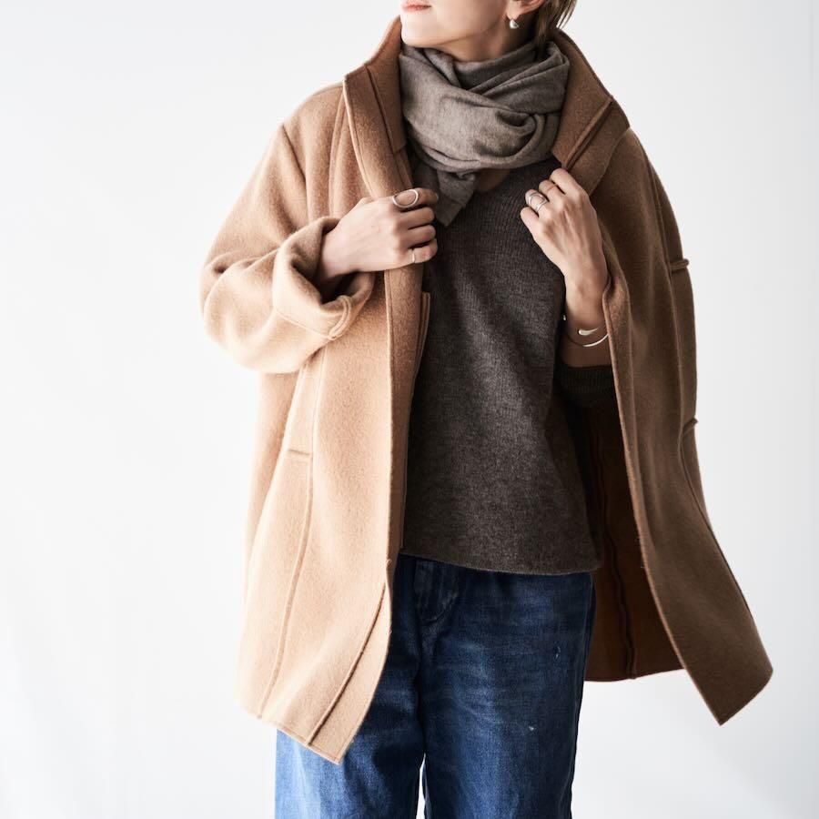 ボリュームのあるトップスの上にも楽に羽織れます。