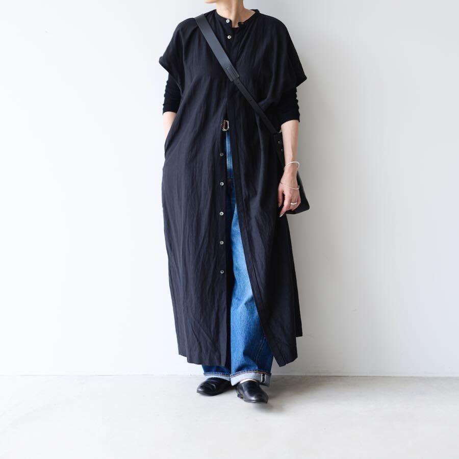 ゆったりと風の抜けもいい身幅に羽織りものなしで安心感のある袖丈。