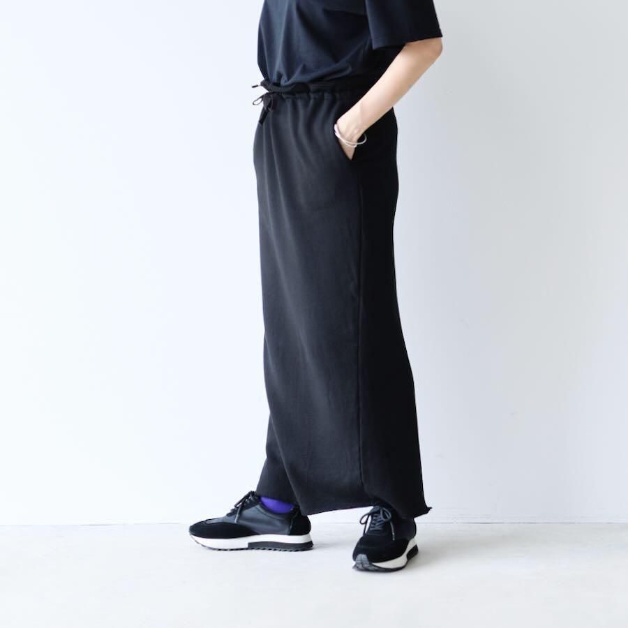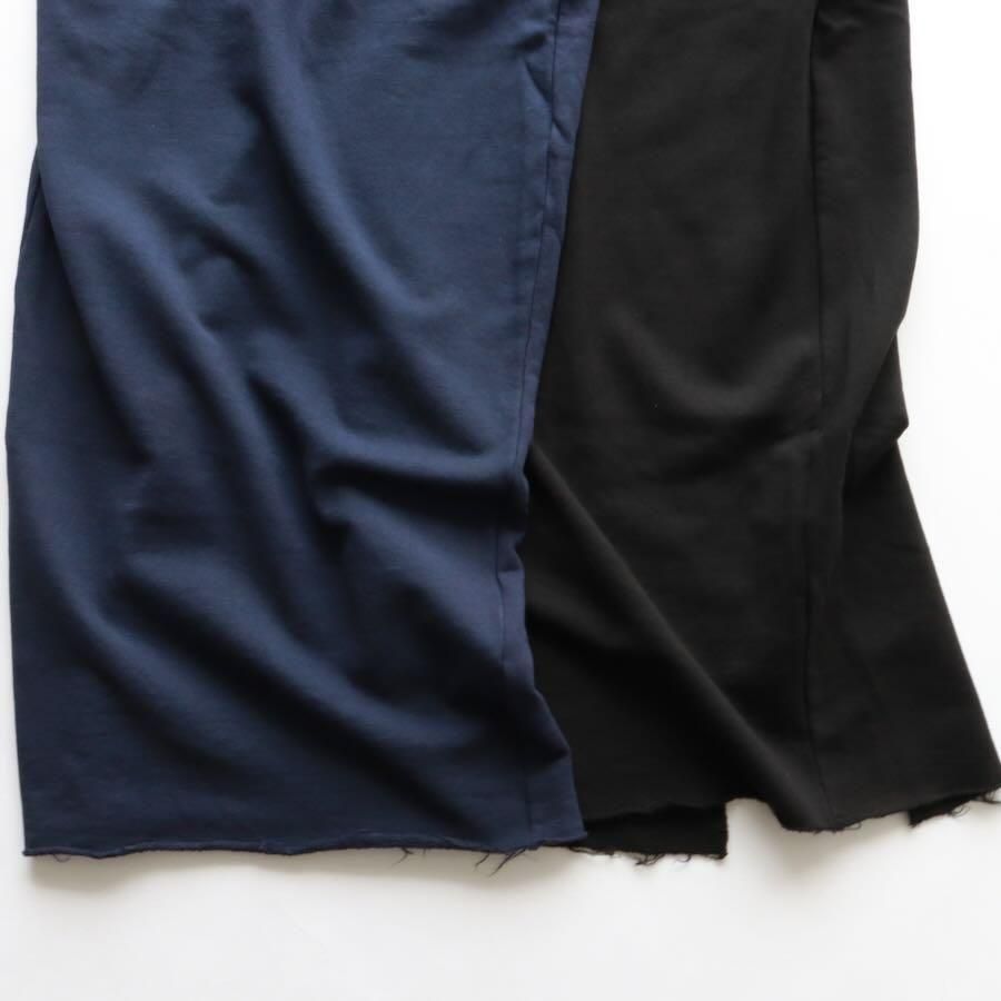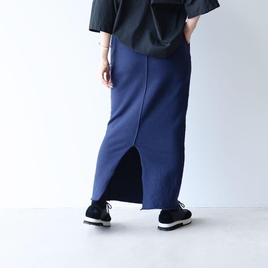 ウエストや裾、スリット部分などは切りっぱなしのデザインで軽やかな仕上がり。