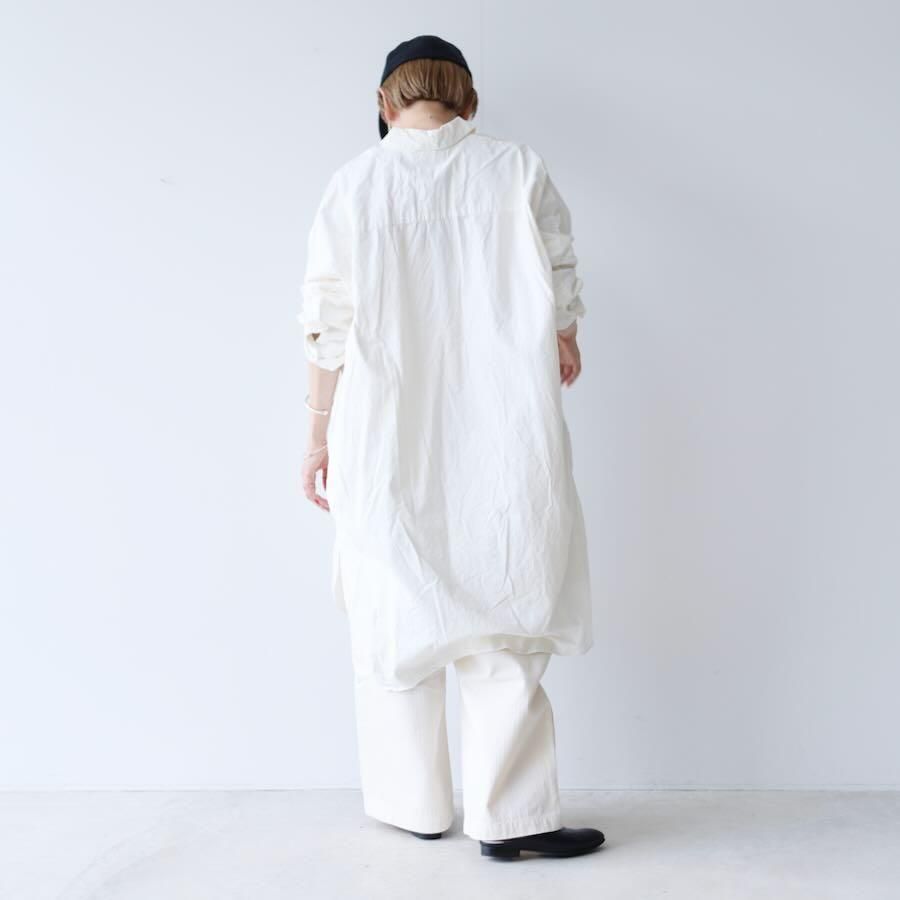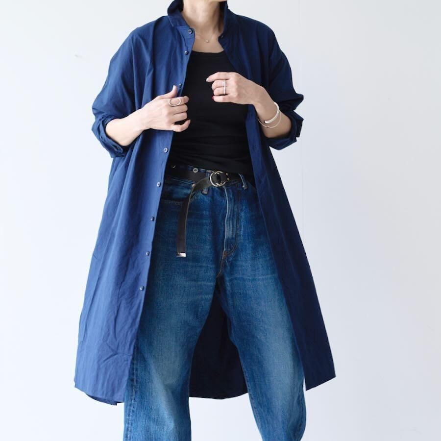 風が抜ける程よいオーバーサイズのロングシャツ。