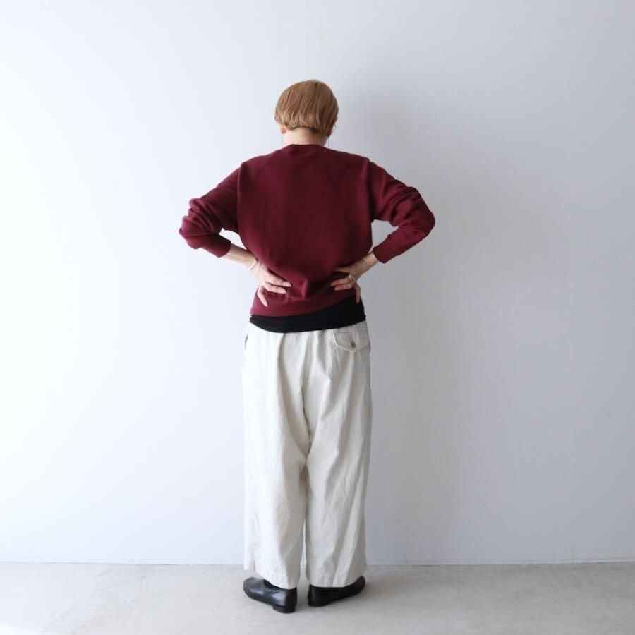 太番手の糸で織られた程よい地厚な生地は秋冬にも安心感がありつつ、