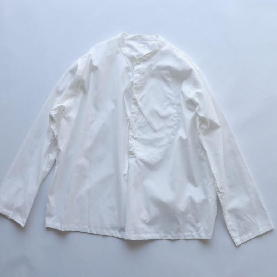 首元はスタンドカラーですっきりと、胸元に隠しポケット付きのデザインです。
