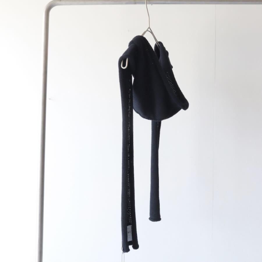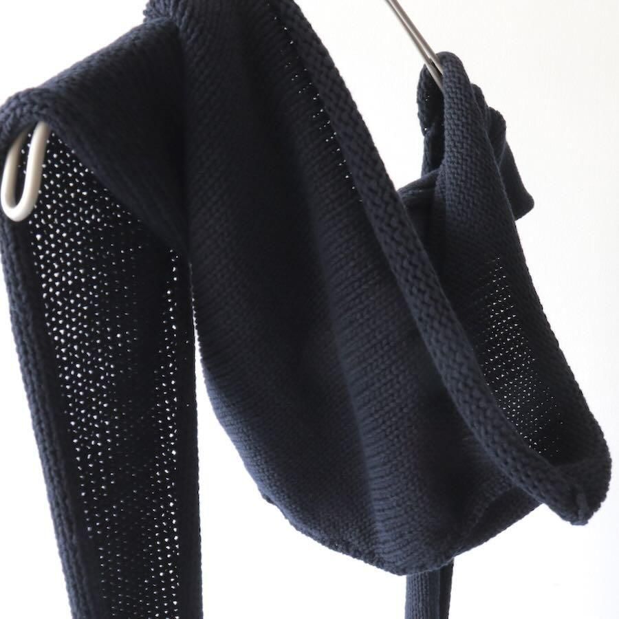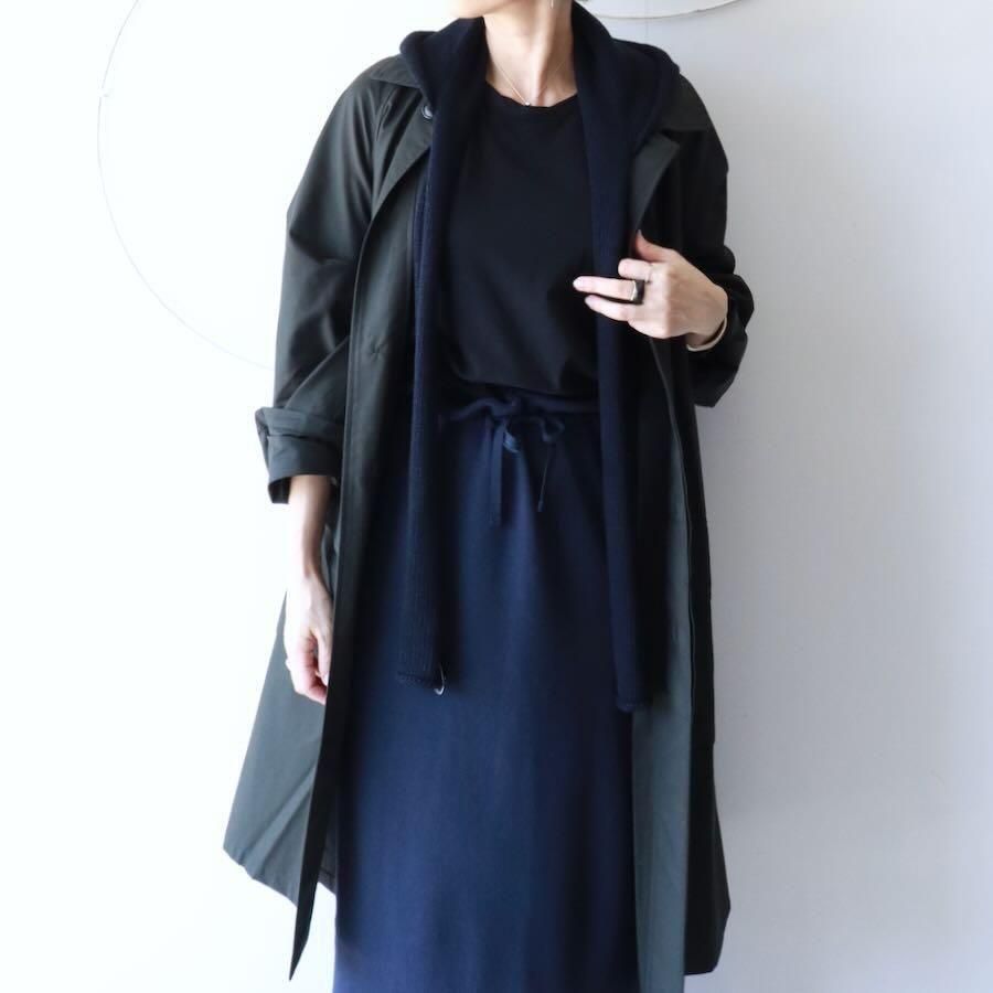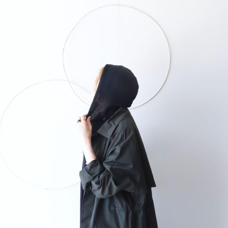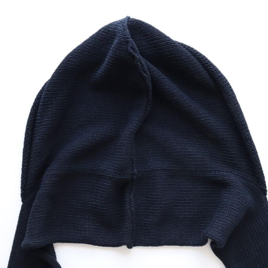 スタイリングに動きや変化をくれるフード付きのニットストールです。