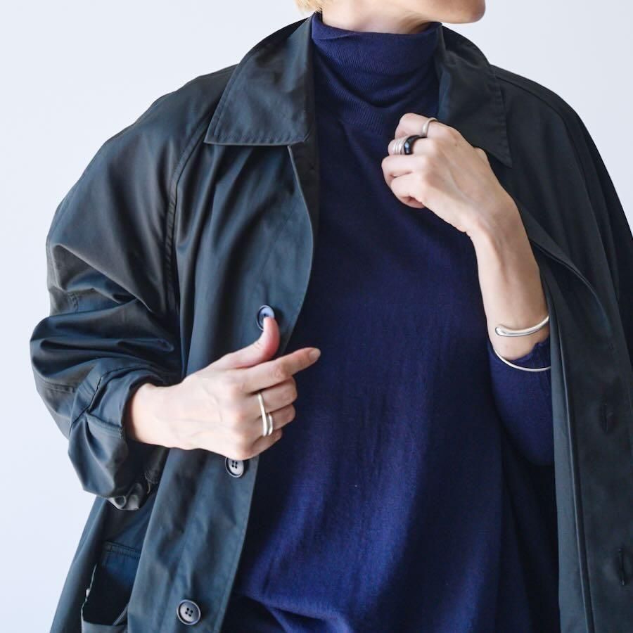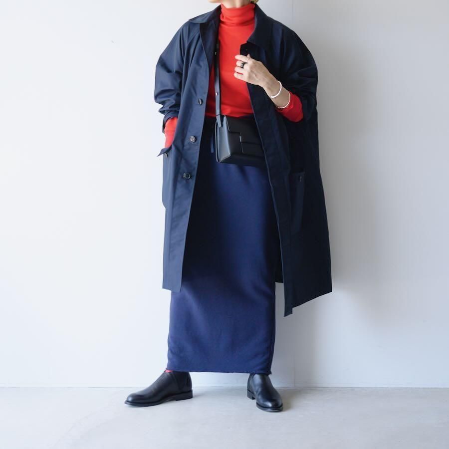 スタンダードなコートもきれいにまとまりすぎずさりげない無骨感がいい雰囲気です。