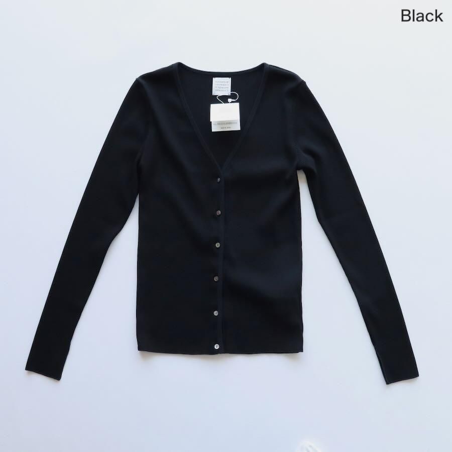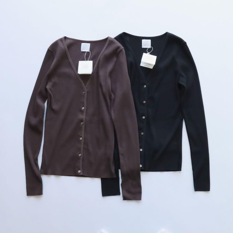 すっきりとしたリブのVネックロングスリーブカーディガンです。