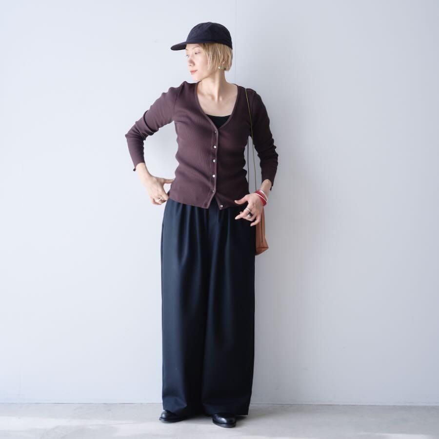 すっきりと女性らしい雰囲気なのでワークなアイテムやタップリとしたボトムに好相性。
