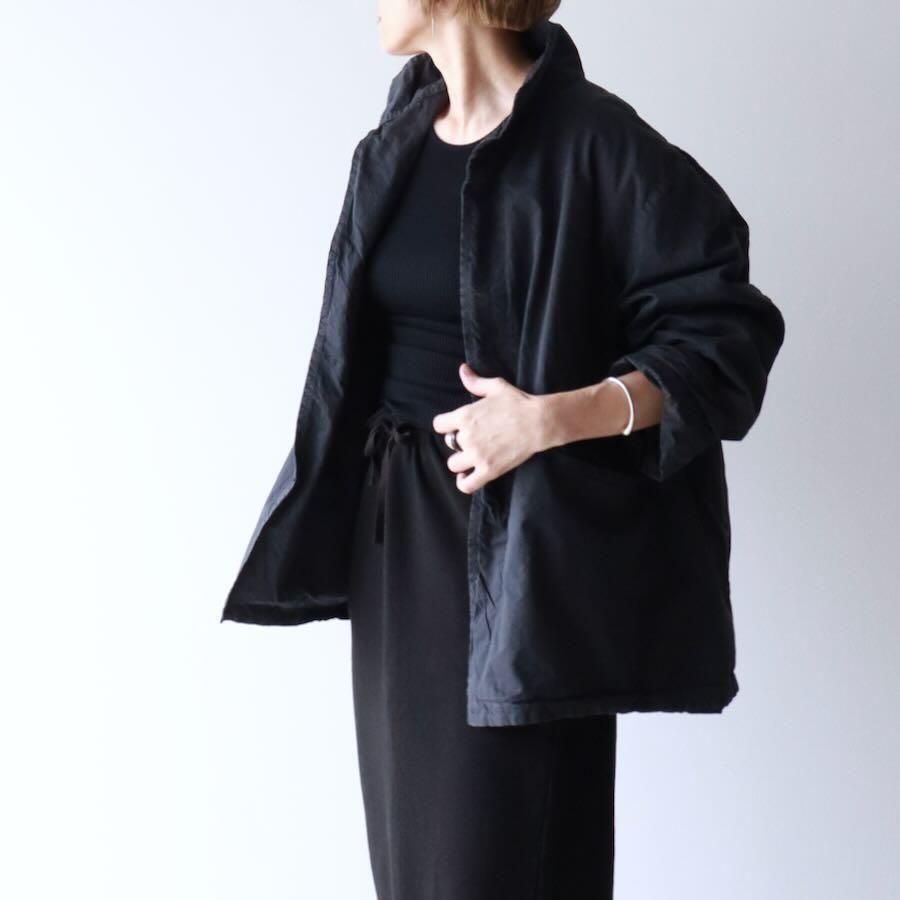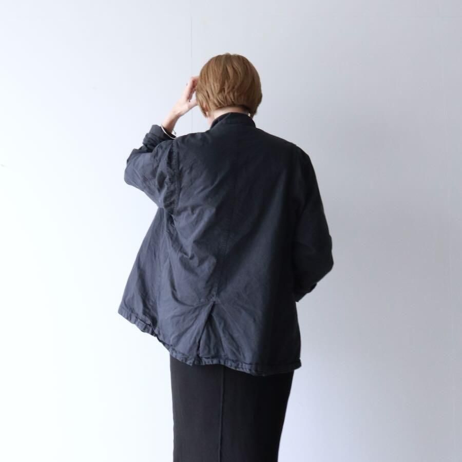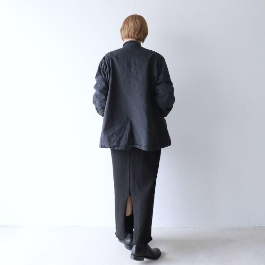 ガーメントダイ(製品染め)により随所にパッカリングが起こり、表情豊かな仕上がりに。