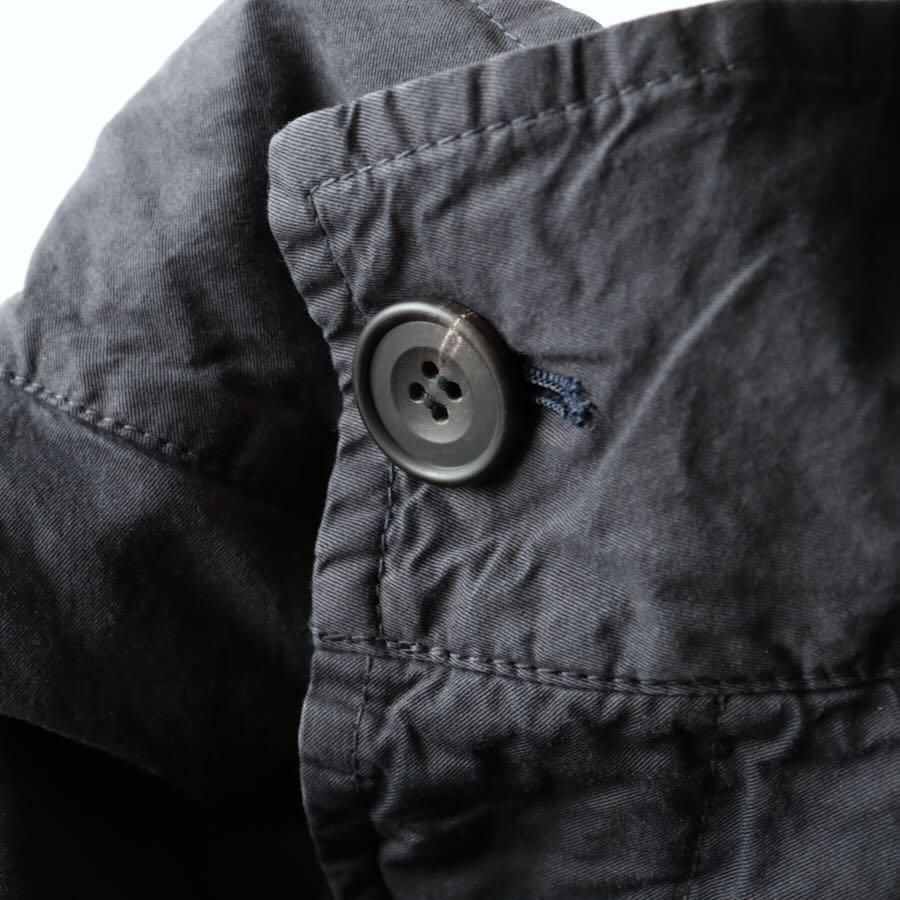 ガーメントダイ(製品染め)により随所にパッカリングが起こり、表情豊かな仕上がりに。