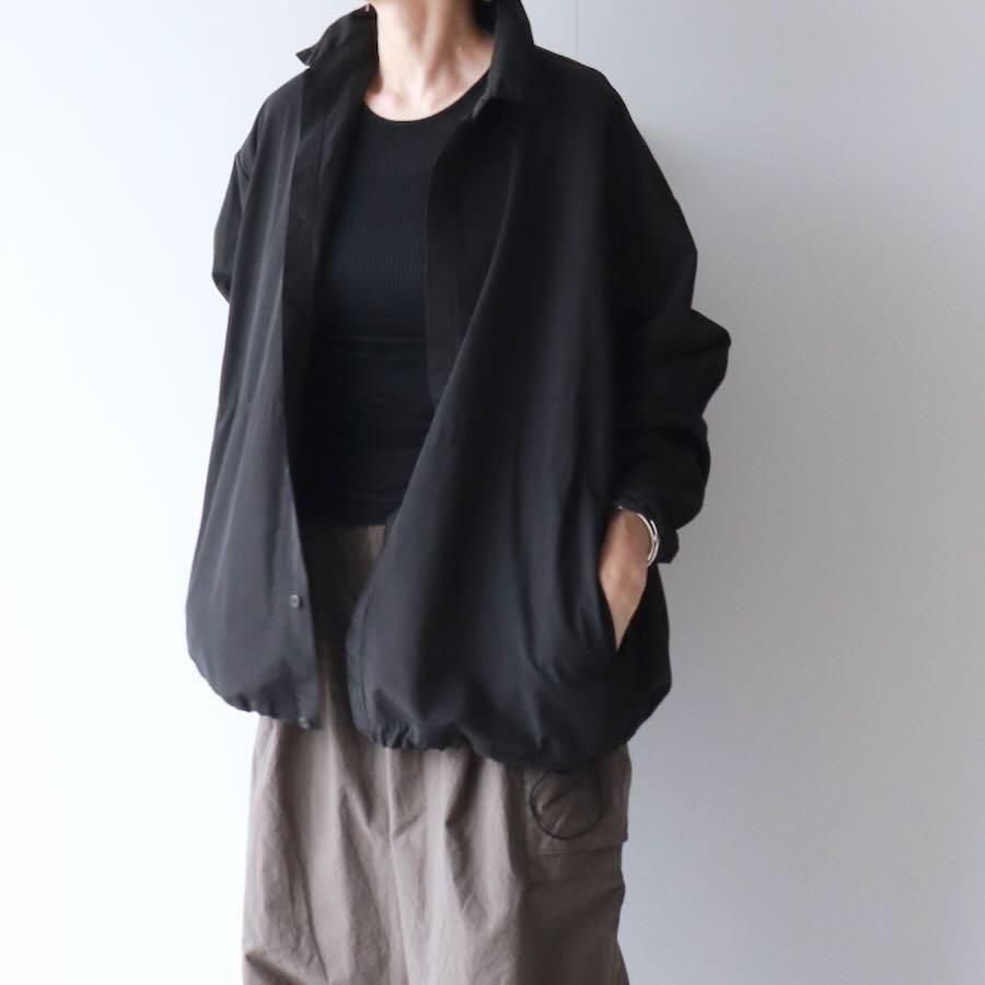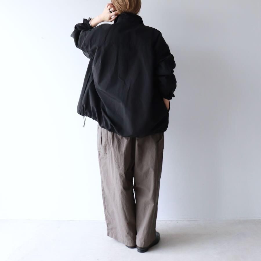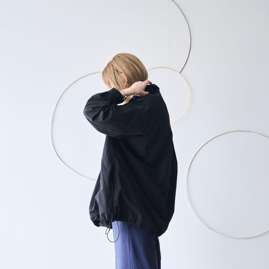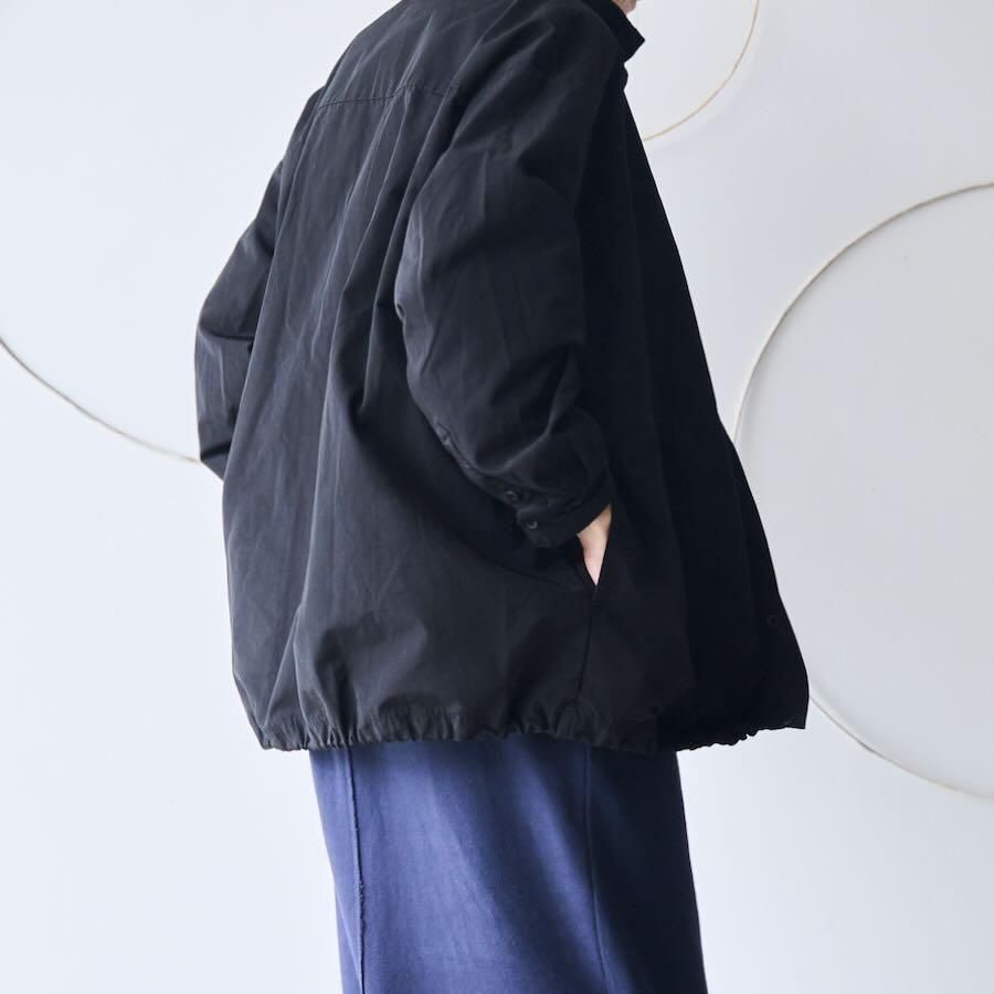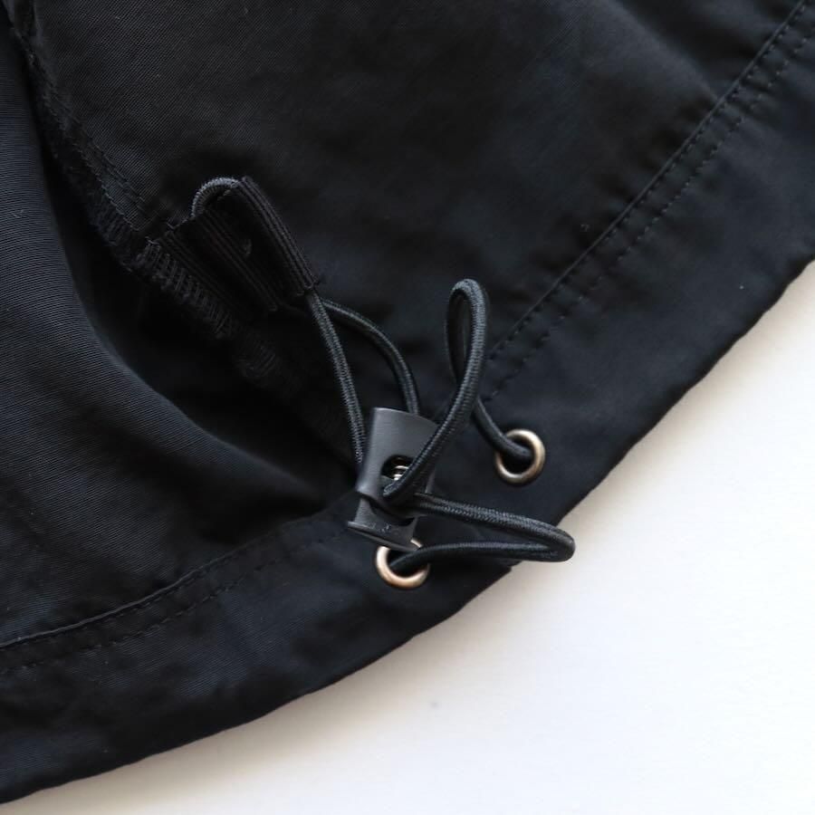 ドローストリングを絞るとブルゾンやコーチジャケットのような雰囲気もあります。