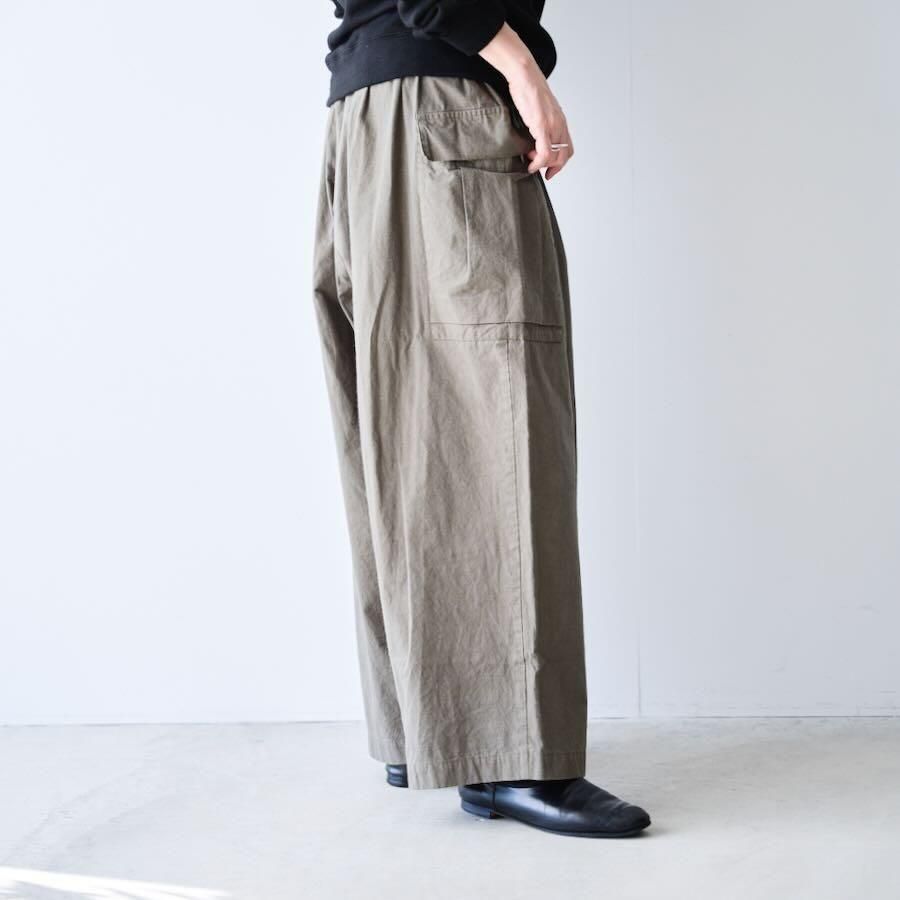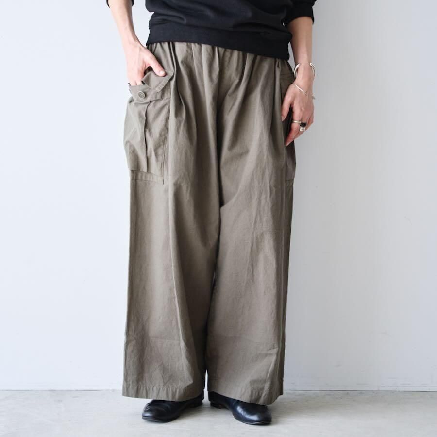 脇にフラップ付きのポケットが付いたボリュームのあるワイドテーパードシルエット。