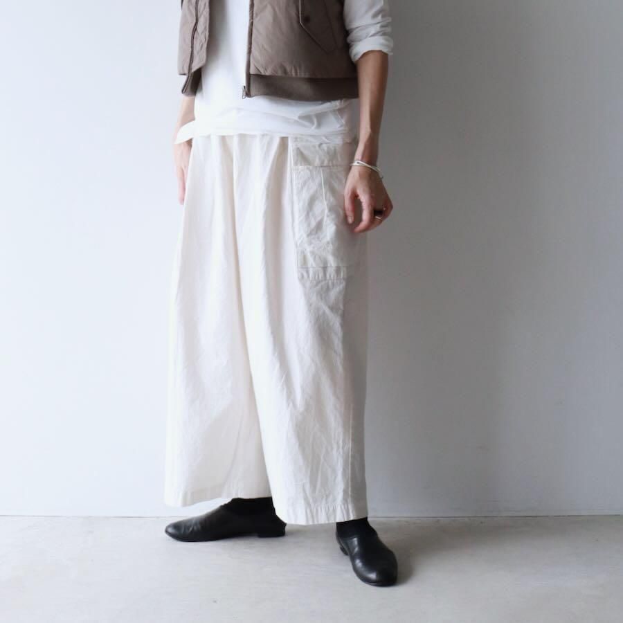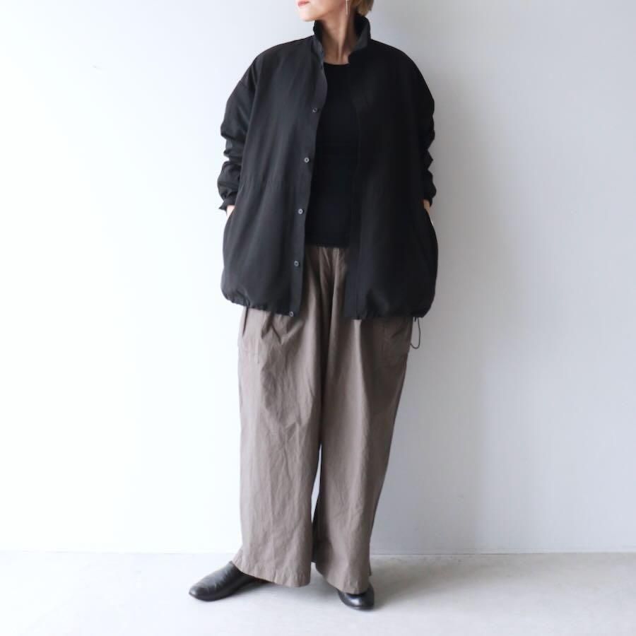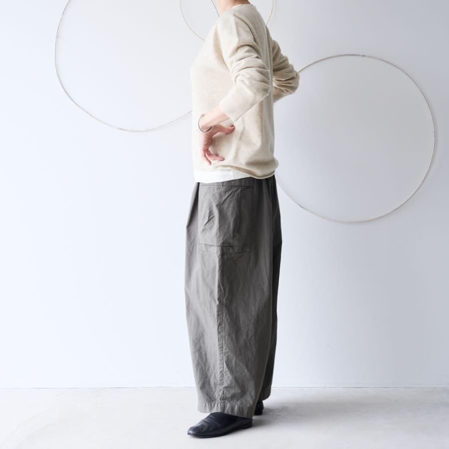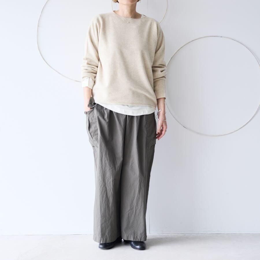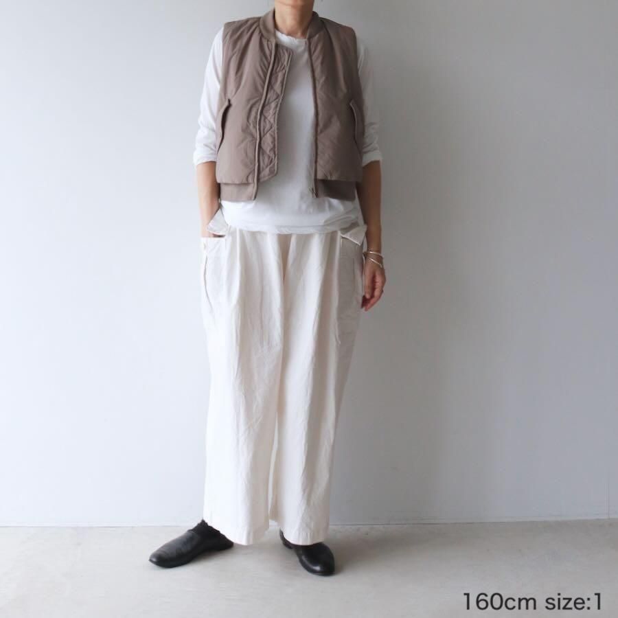 しなやかな素材なので、1は普段ワイドパンツが苦手な小柄な方も穿きやすいと思います。