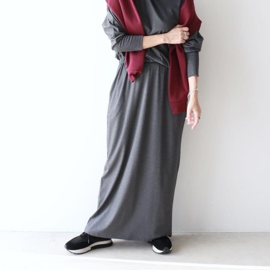 『1枚で完成』しなやかで落ち感のあるスムース素材のロングワンピースです。