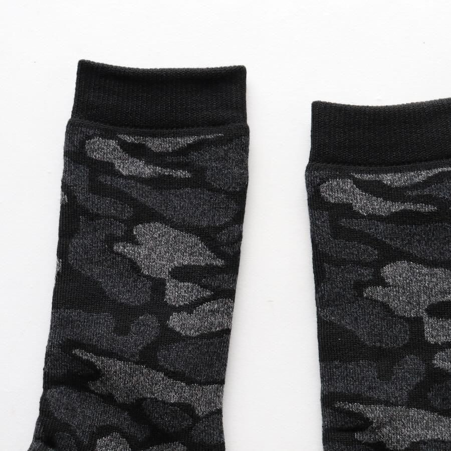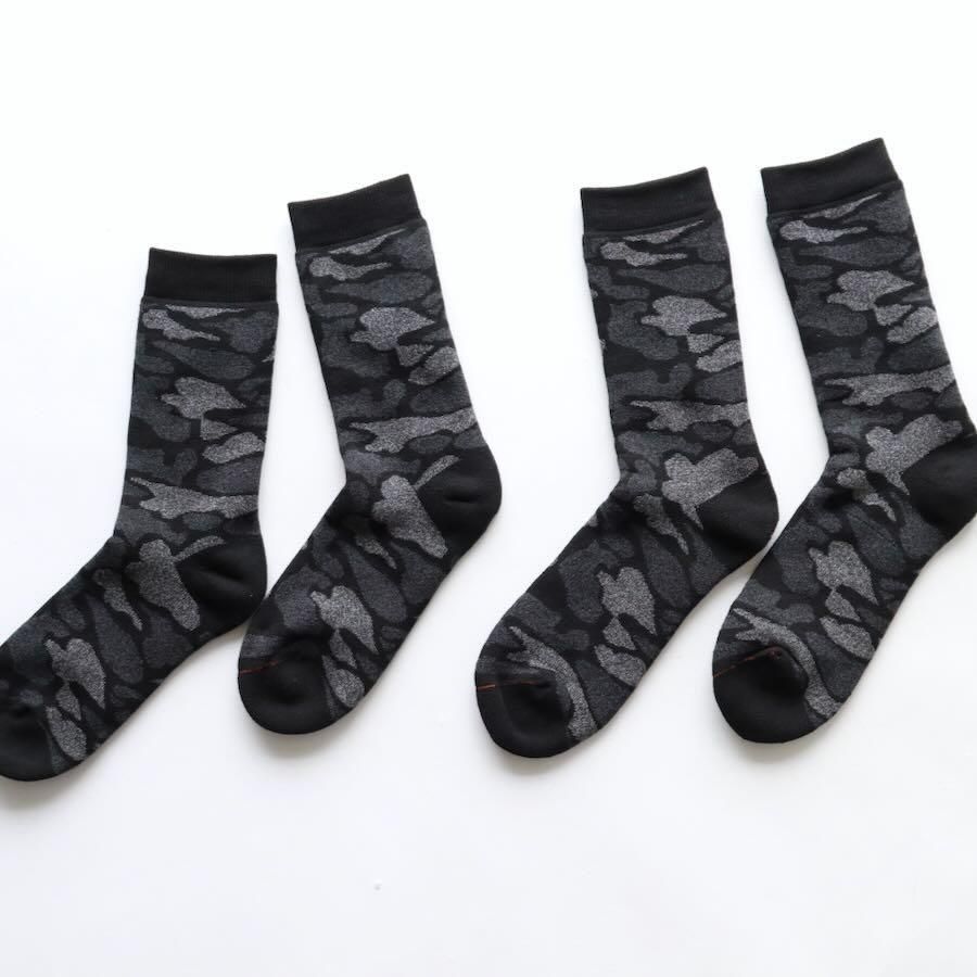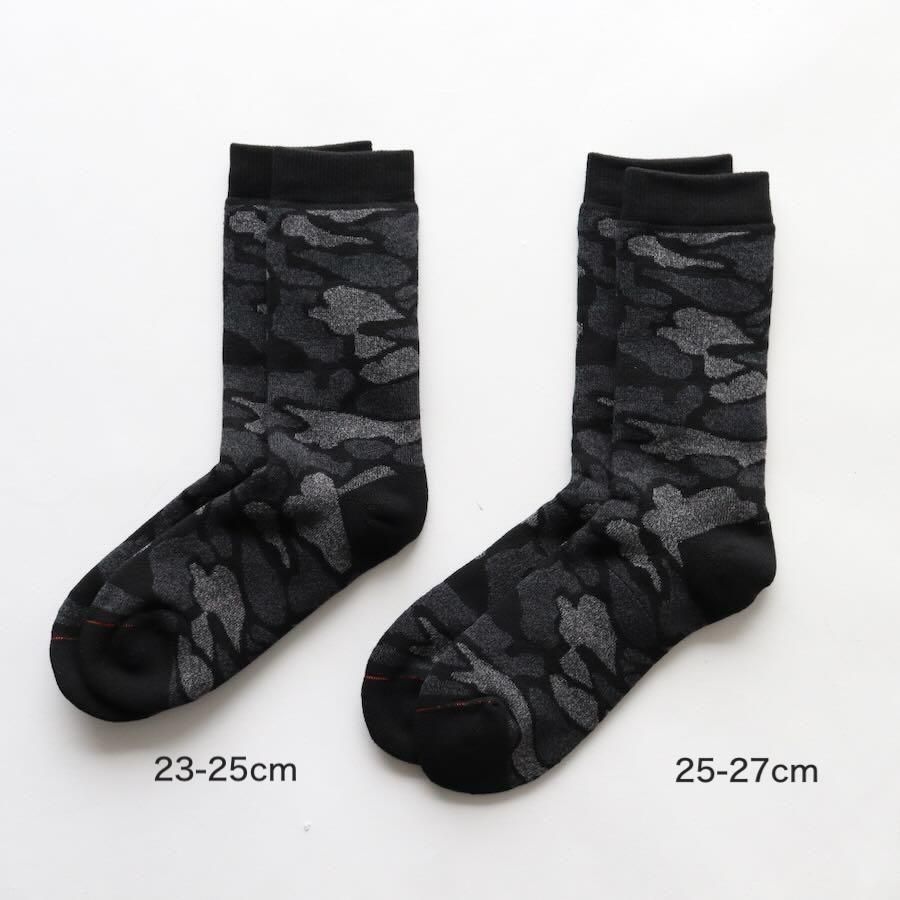 肉厚で暖かく、肌あたりのやさしい総パイルのカモパターンソックスです。
