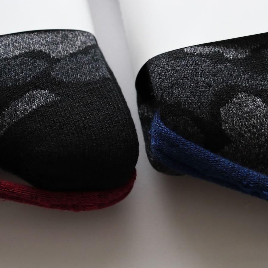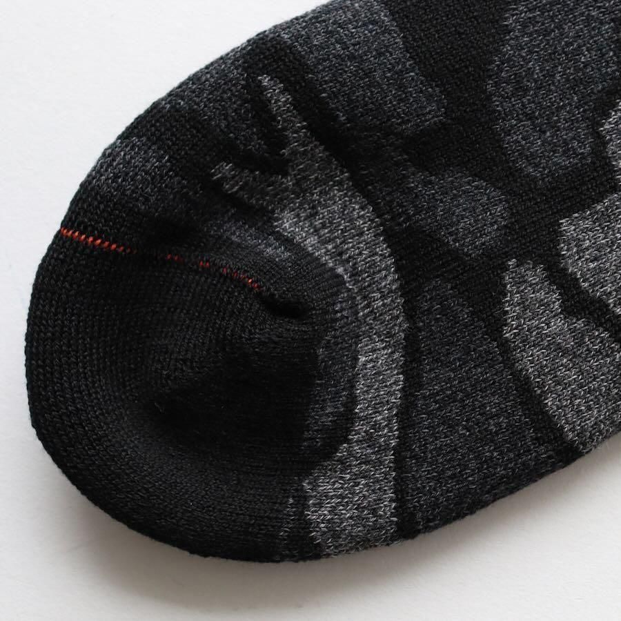 一般的なソックスの約3倍の糸を使用し、保温性とクッション性を高めたソックス。