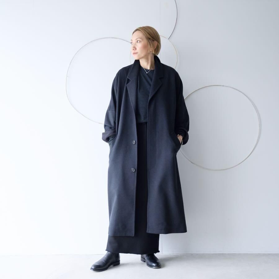 こちらのオーバーコートは形とサイズ感が絶妙で、不思議とさまざまな体型の方にしっくりきます。