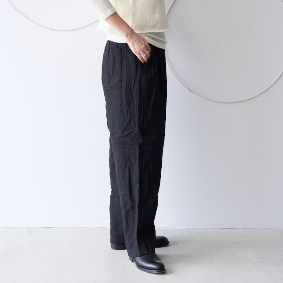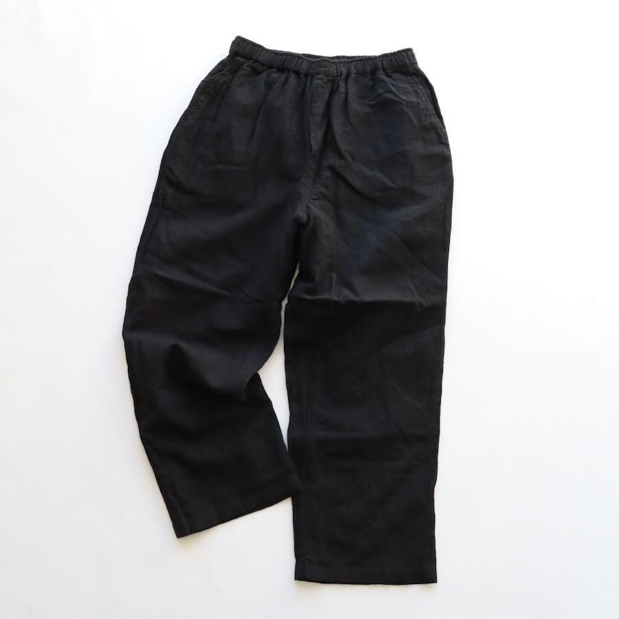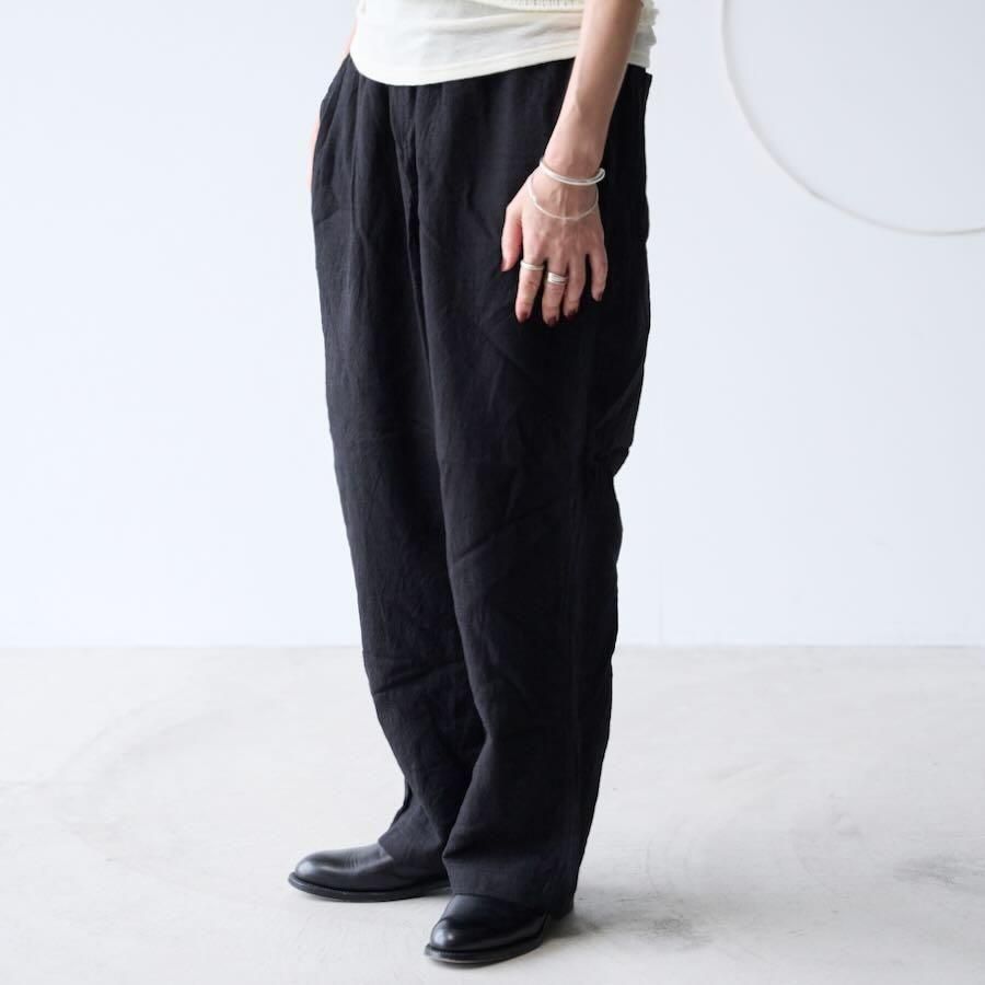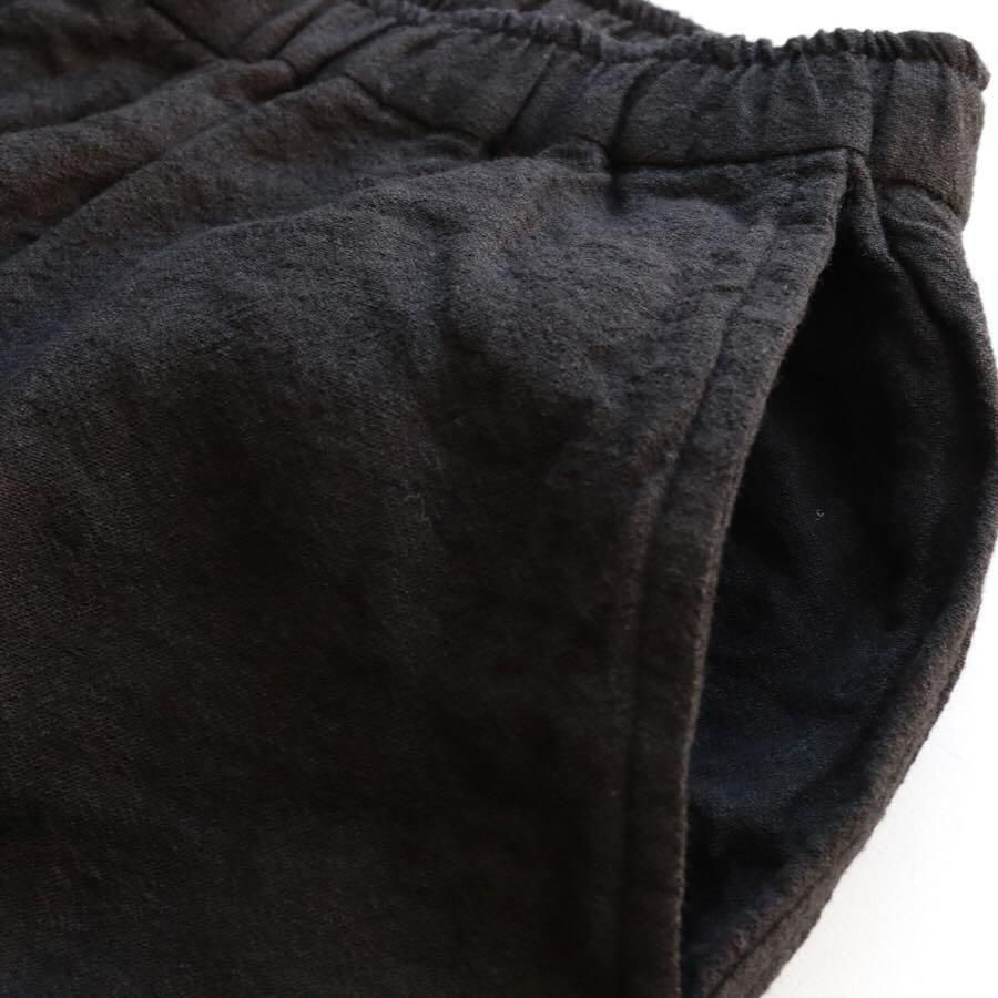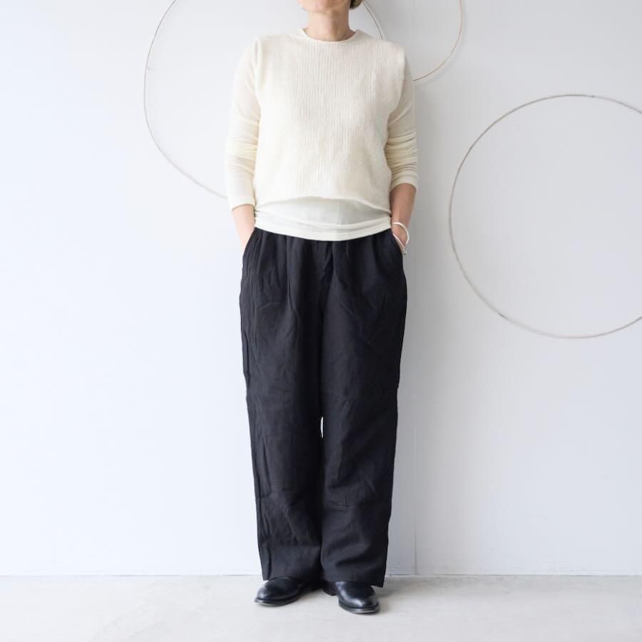 凹凸のある独特な素材感が特徴の縮絨ウールリネンのイージーパンツです。