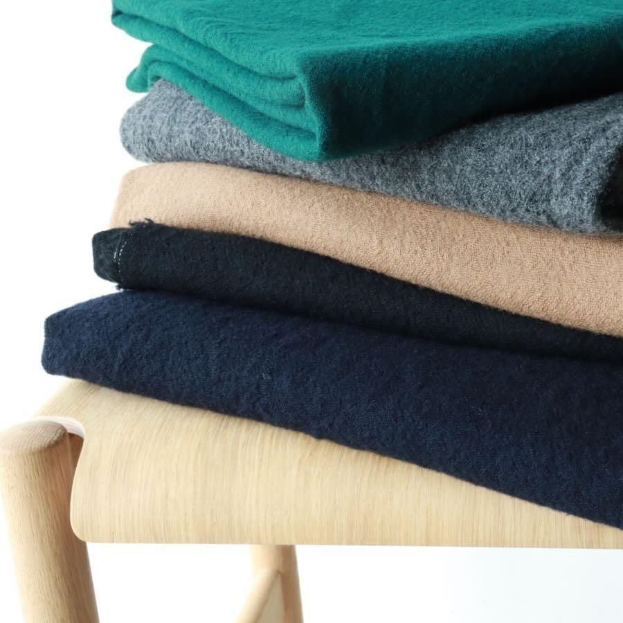 毛織物の産地愛知県一宮市で甘く平織りに織った生地にタンブラー加工を施すことで