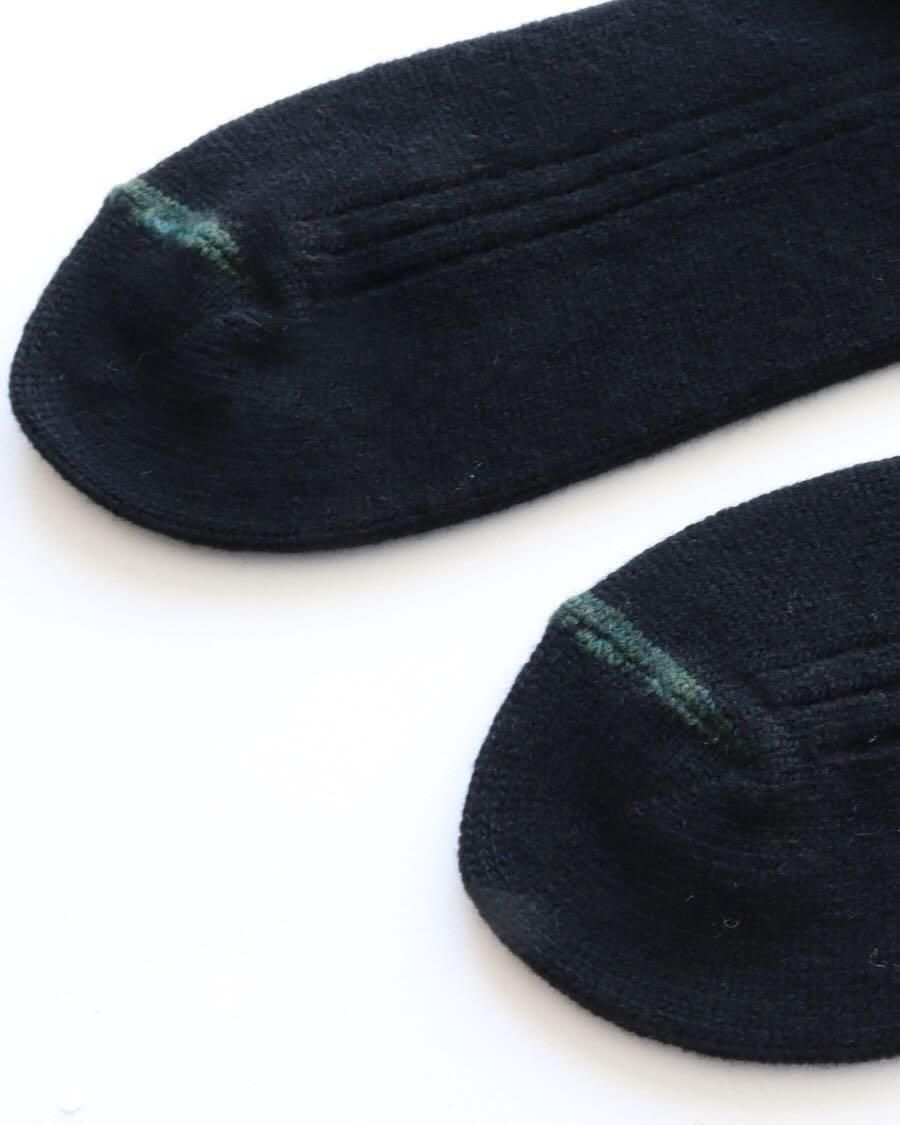 シンプルながらサイドのリブ編みと足先の配色がいいアクセントです。
